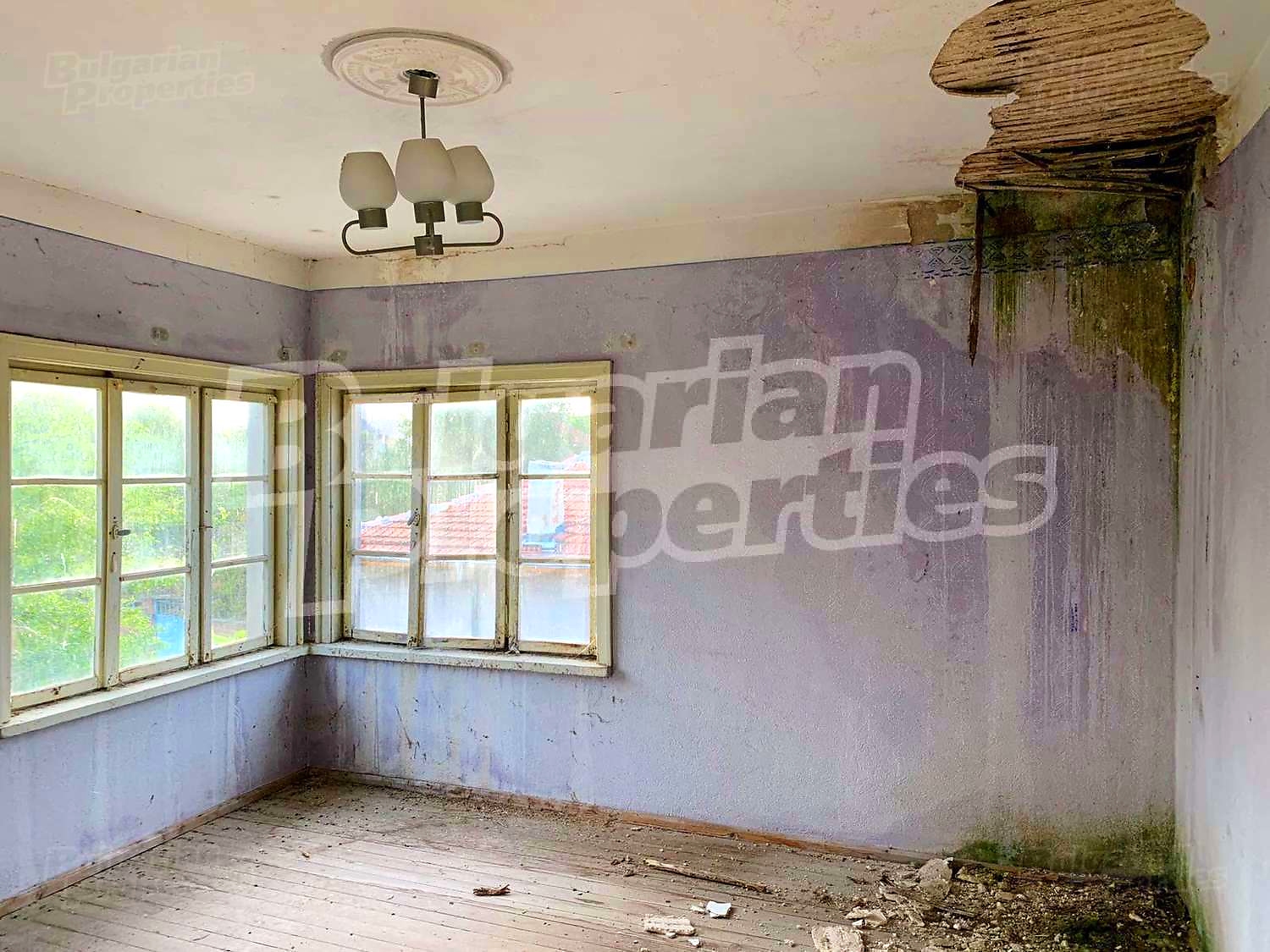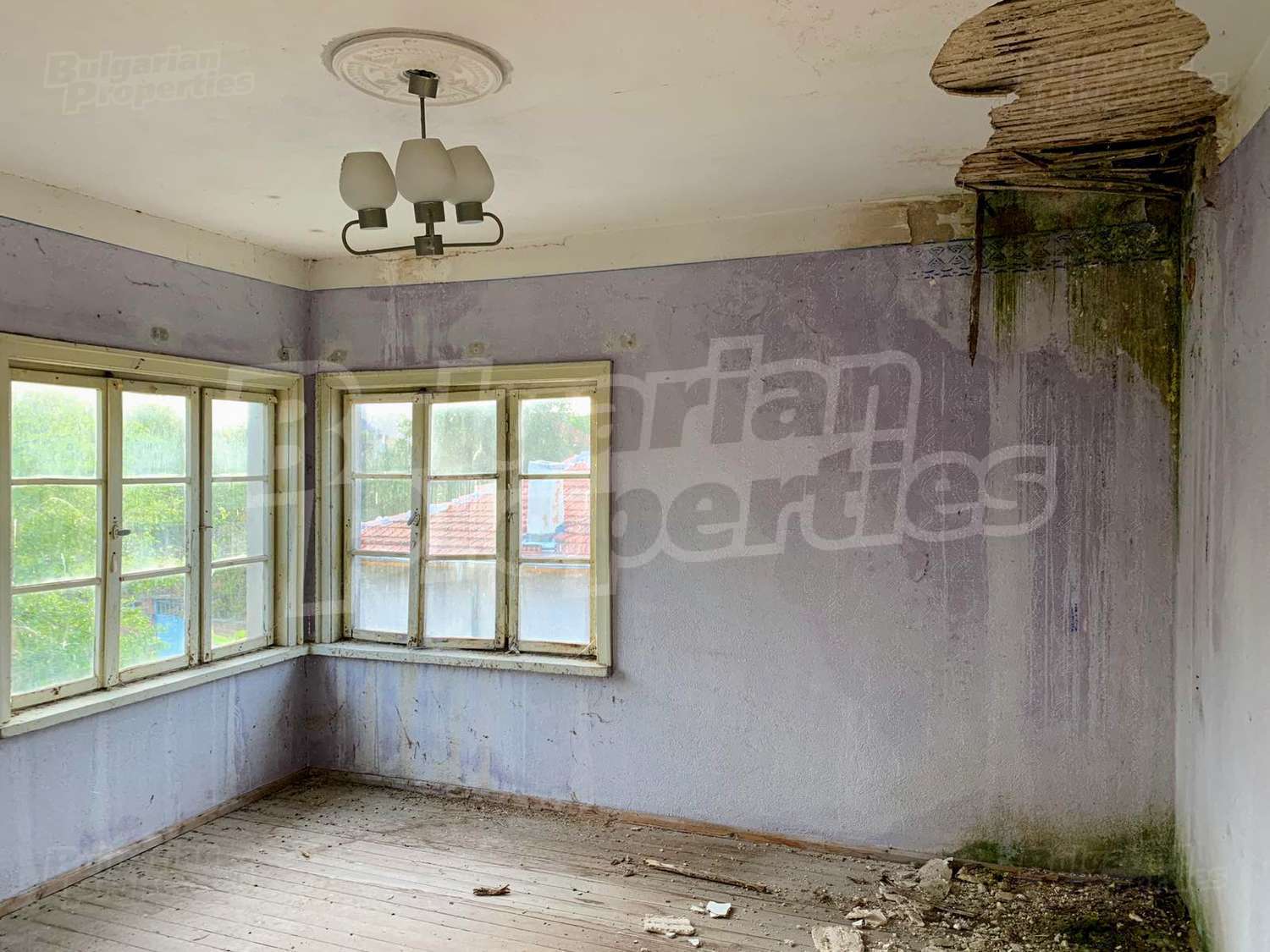 Electricity is available as well as running water outside the house. The bathroom is in the summer kitchen and the toilet is external, so a good decision is to relocate them in the house. The property is connected to the main drainage of the village which is a big advantage. The house has had some damages inside due to a leak from the roof and needs renovations, modernizing, internal bathroom and toilet.