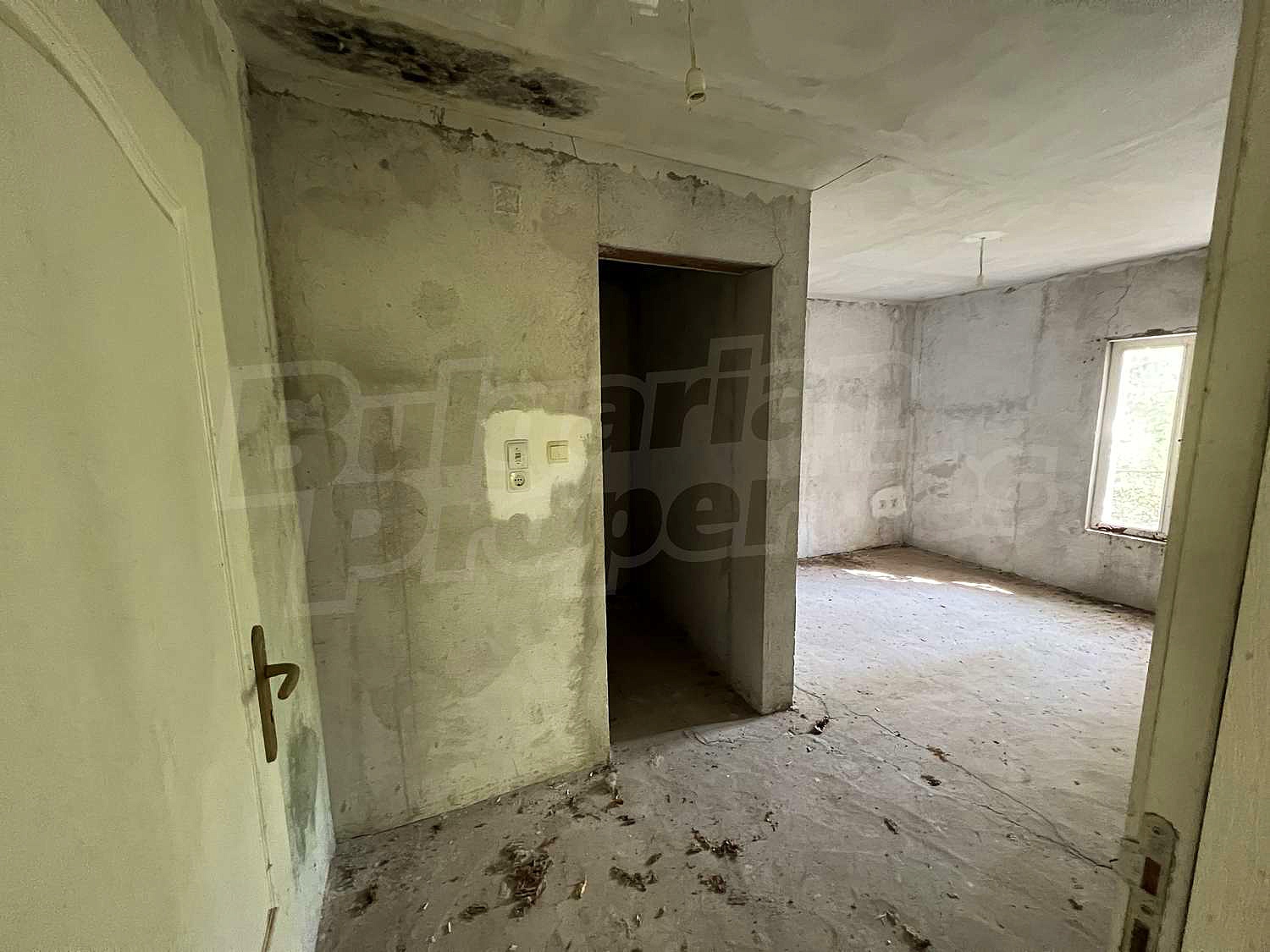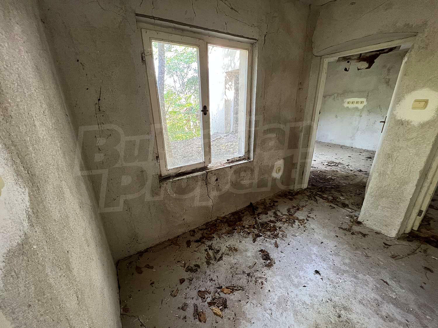 This property is located in a hilly area only 10 km away from the town of Elhovo. The total living are of the house is 60 sq. m. It consists of corridor, living room, bedroom, master bedroom with premises for bathroom/toilet and terrace, and basement (16 sq. m.). There is electricity and water (connected to septic tank) installed in the property; a telephone line is also possible to connect.