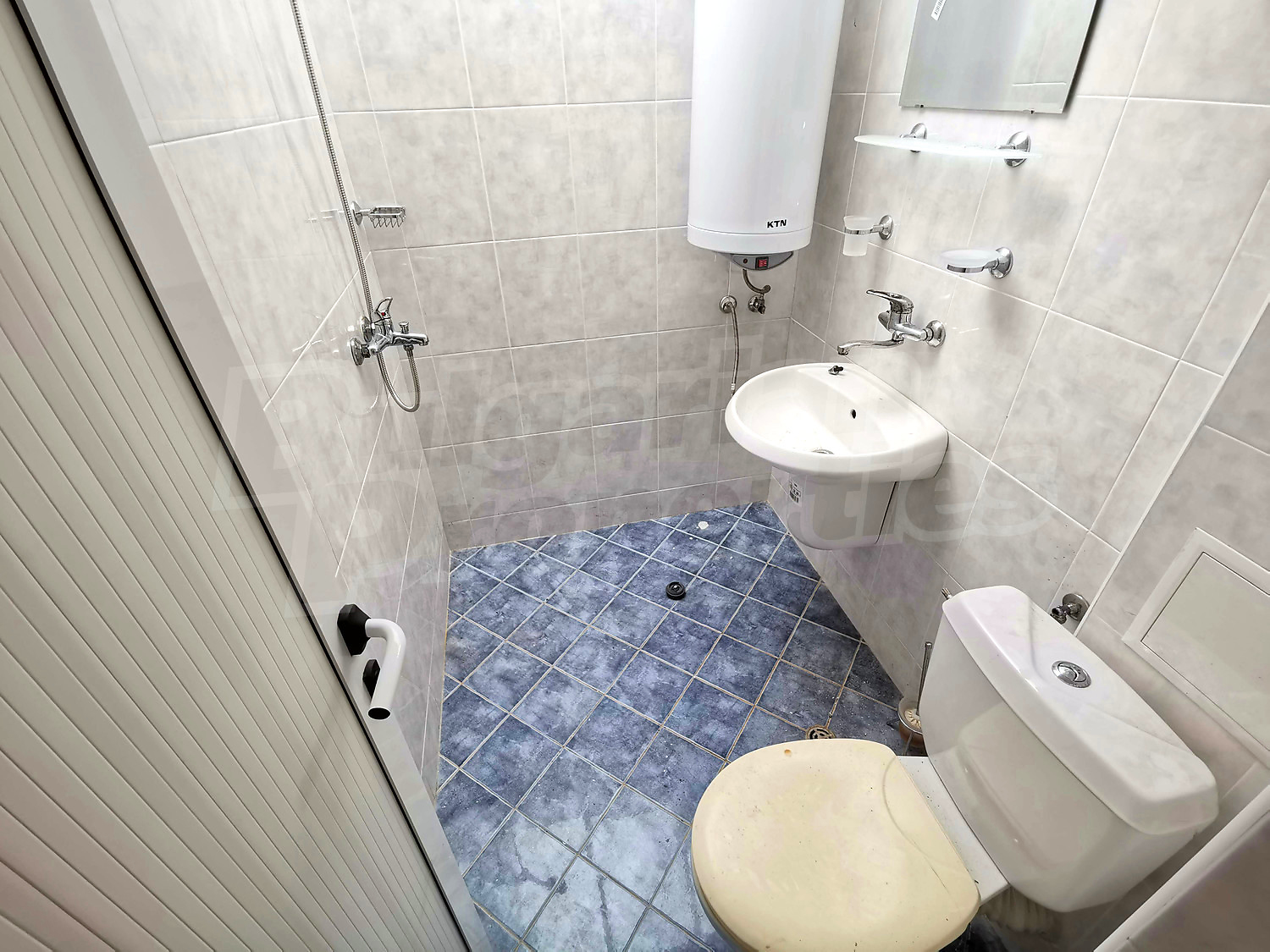 The apartment is on the first floor of the building and has a total built-up area of 68.22 sq. m. It has an entrance hall, a living-room with a kitchenette, a dining room, a bedroom and bathroom - toilet, and a terrace. It is fitted with an air conditioner and the bathroom is furnished with all the necessary equipment; there are ceramic wall and floor tiles.