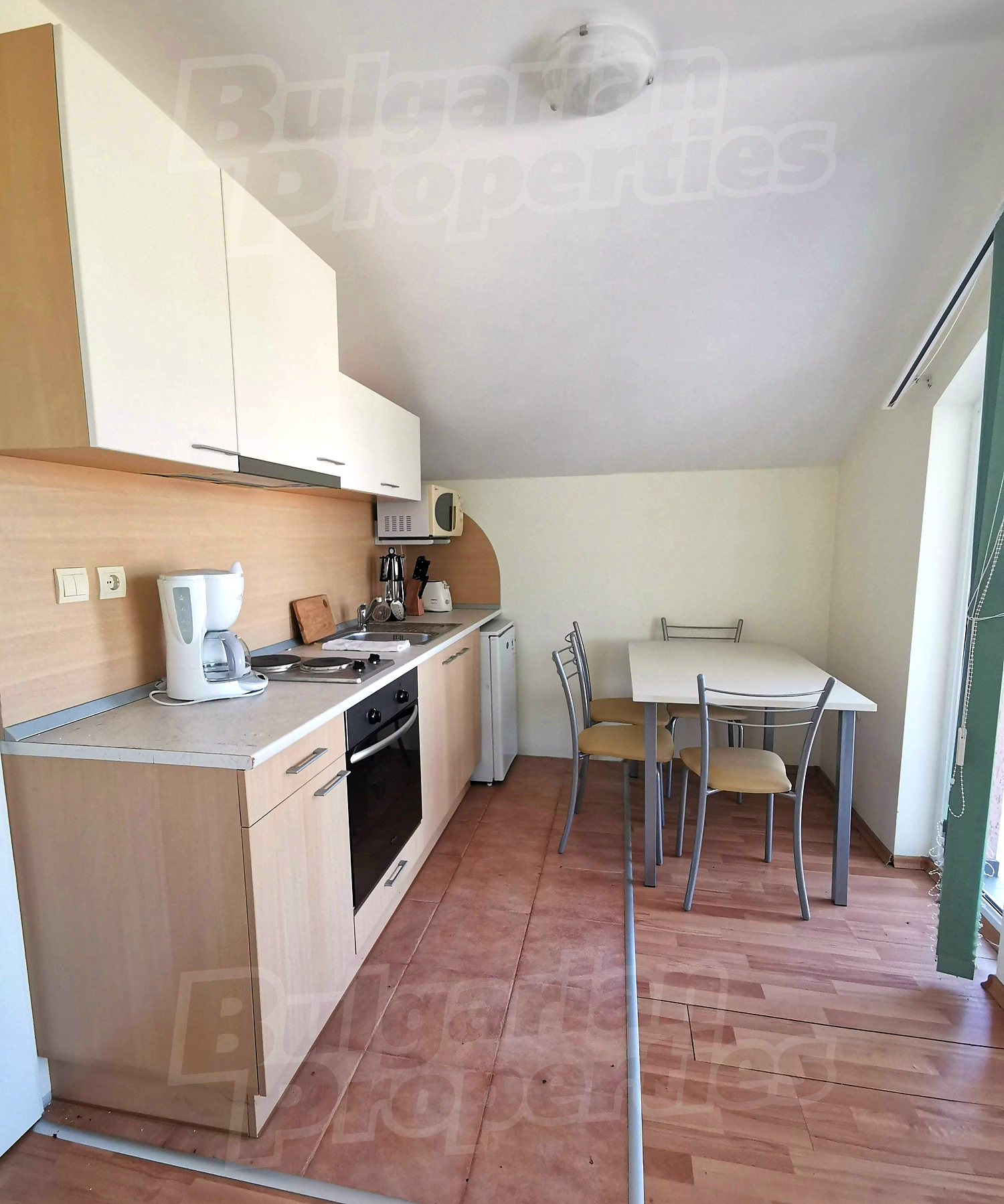 This one-bedroom apartment is located in a residential building without annual maintenance fee which is in a village that is situated about 30 km away from the regional centre of Bourgas and 25 km away from its international airport. Another advantage of its location is that the village is about 5 km away from the popular seaside resort - Sunny Beach and about the same distance from the ancient town of Nesebar - another popular tourist destination.