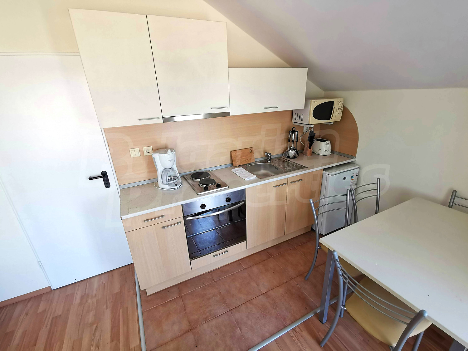 This one-bedroom apartment is located in a residential building without annual maintenance fee which is in a village that is situated about 30 km away from the regional centre of Bourgas and 25 km away from its international airport. Another advantage of its location is that the village is about 5 km away from the popular seaside resort - Sunny Beach and about the same distance from the ancient town of Nesebar - another popular tourist destination.