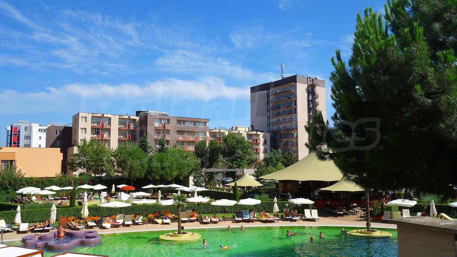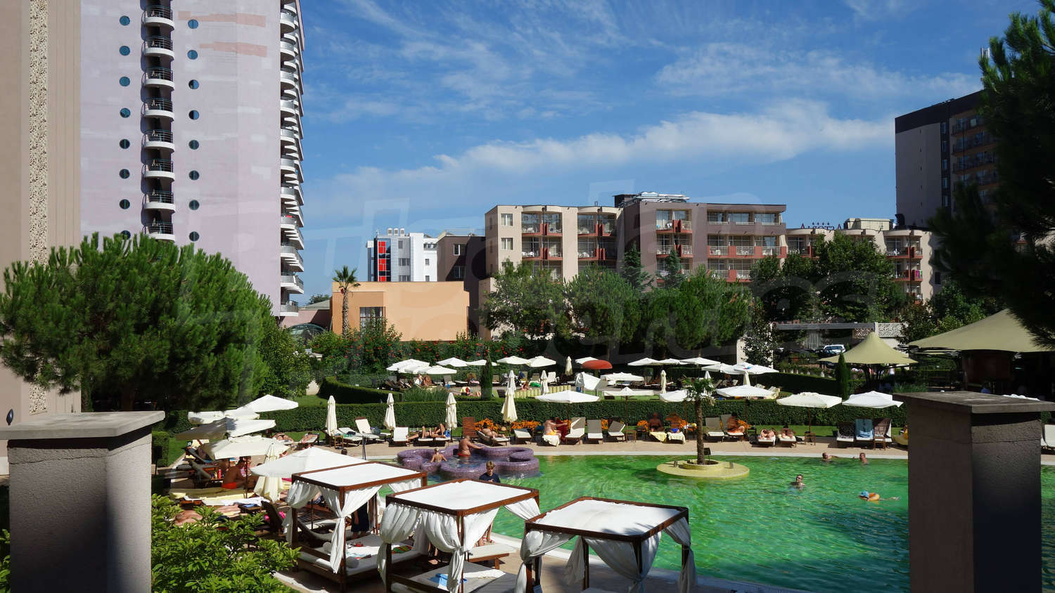 a five-star hotel, comprising 143 rooms, 6 buildings with 504 apartments, a children’s playground and a garden with an area of over 9 decares. Numerous entertainment options are a further guarantee for a perfect holiday: 6 theme restaurants and confectioneries, a piano bar and a lobby bar. The Royal Beach Barceló Complex is remarkable for its picturesqueness and five-star luxury, which have made it the new paradise place of Sunny Beach Resort.