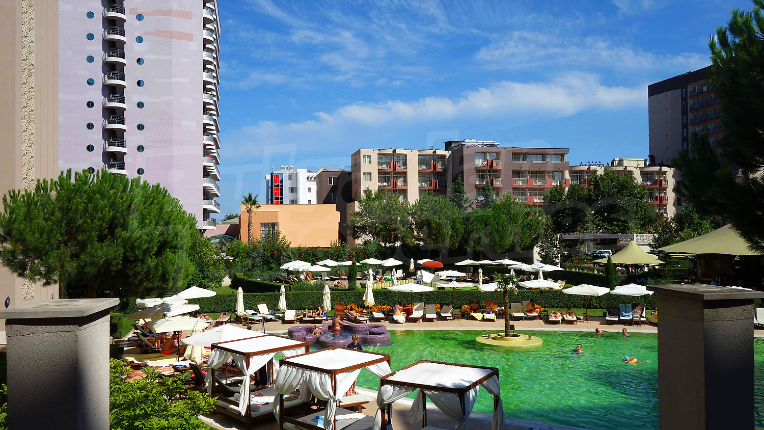 Royal Beach is located in the most modern and luxury holiday resort along the Bulgarian Black Sea coast – Sunny Beach. The beach strip is a combination of exotic nature and modern atmosphere which make it a magnetic place for relaxation and recreation. The resort offers various amusement spots – numerous restaurants, bustling night clubs, modern discos and luxury cafés. All this makes Sunny Beach a very attractive place both for Bulgarian and foreign tourists. Here you can take pleasure in the exotic plants and the majestic dunes as the beach in the resort is holder of the prestigious Blue Flag award.