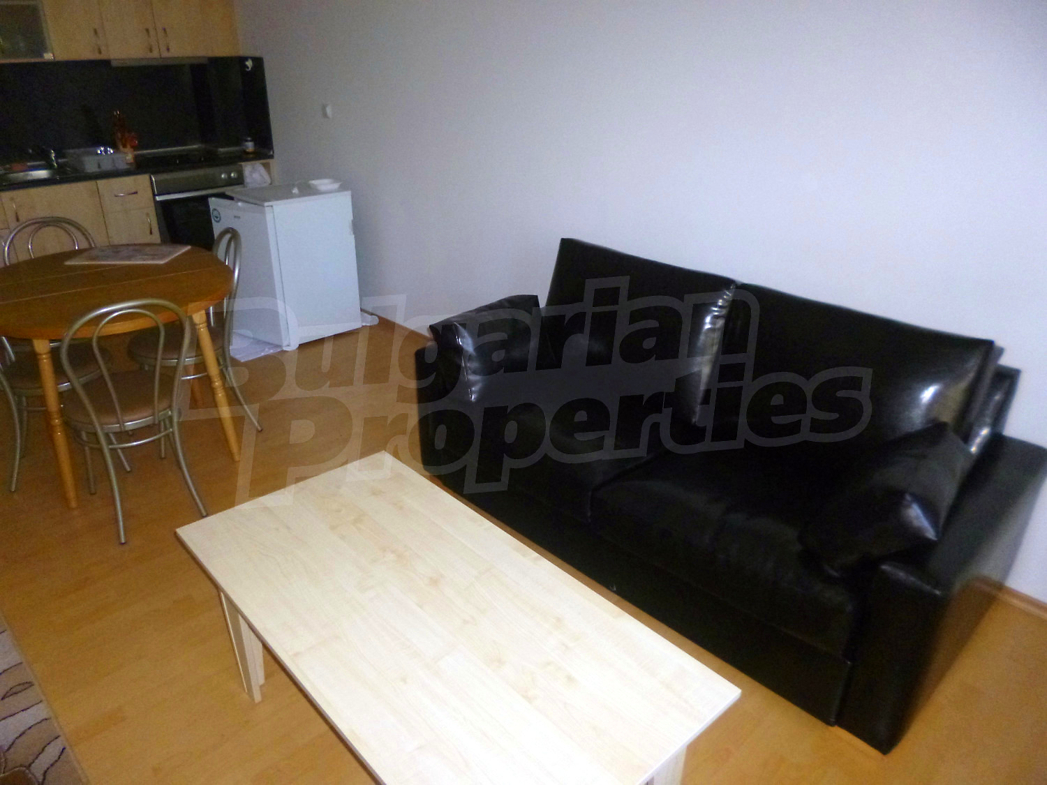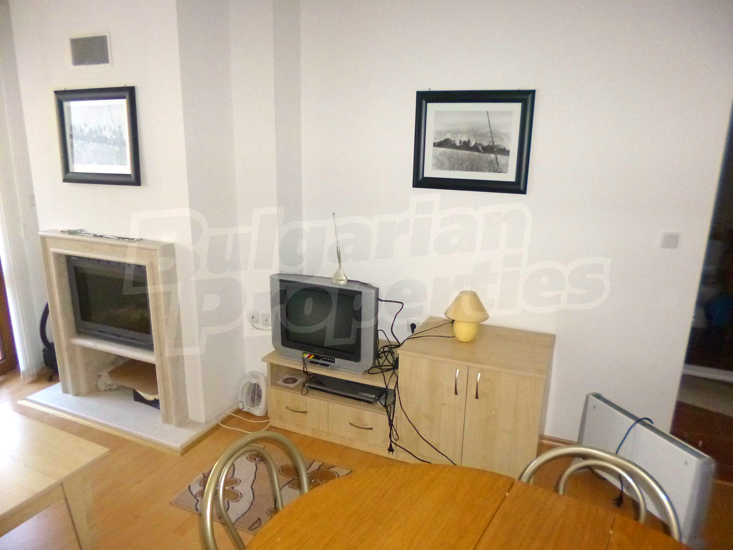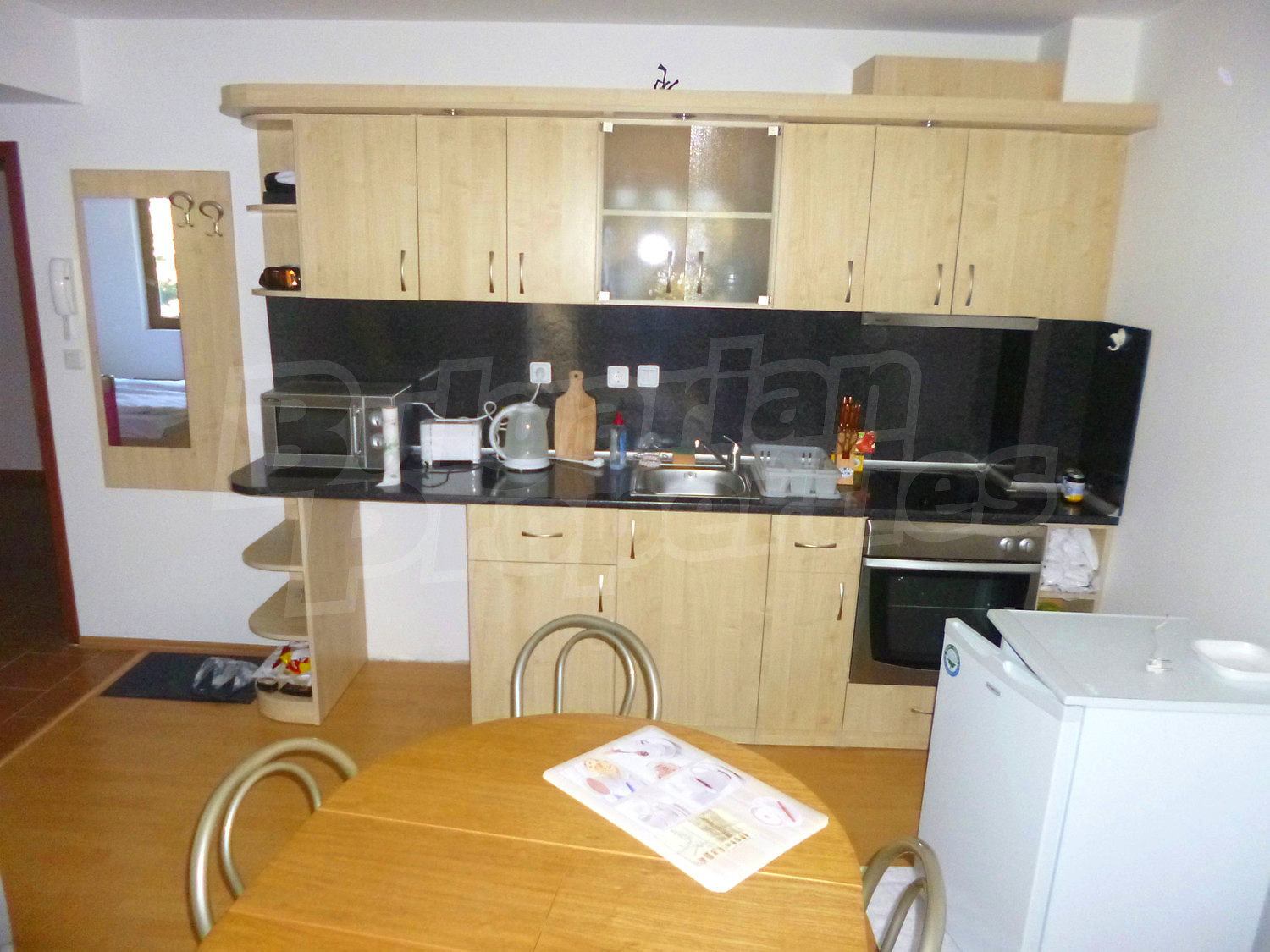 Located on the second floor the described 1-bedroom apartment is sold fully furnished and equipped, and you can immediately start living in it. The total area of the apartment is 62.25 sq.m., including the living area - 50.85 sq.m. and the common areas - 11.40 sq.m. It consists of a kitchen and living room in one premise, a bedroom, a bathroom with WC and a balcony with beautiful views of the surrounding pine forests. The rooms are fitted with laminate flooring, painted walls and PVC joinery. The heating is achieved by a fireplace in the living room and electric radiators. The final price of the property includes a basement with an area of 4.45 sq.m. and common areas of 1 sq.m.