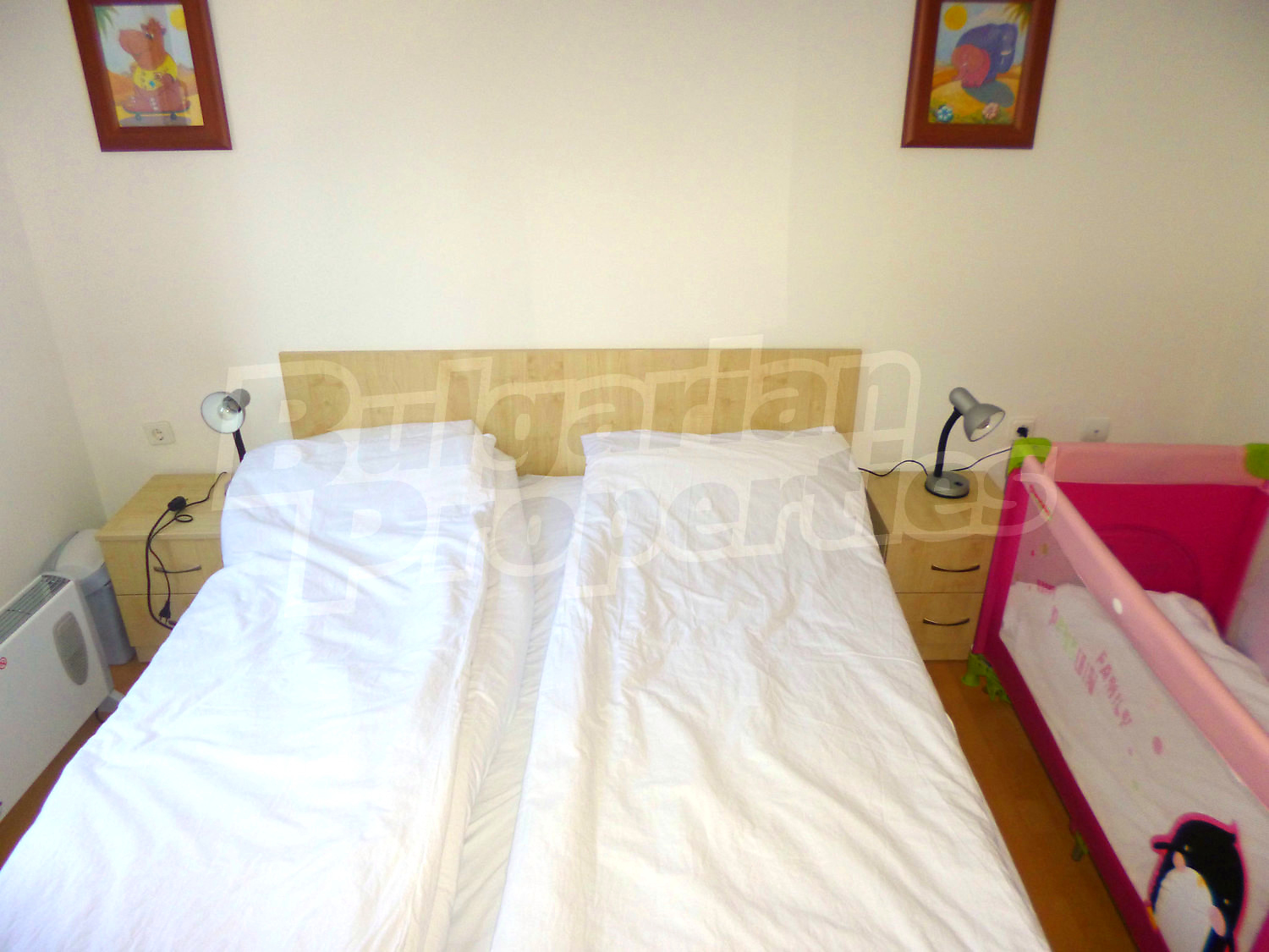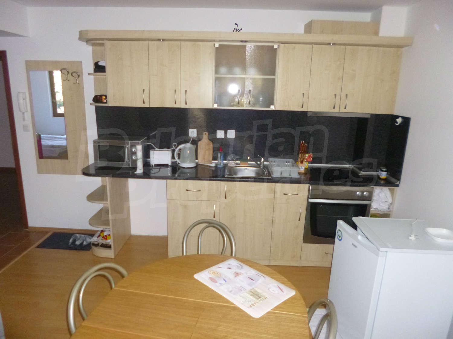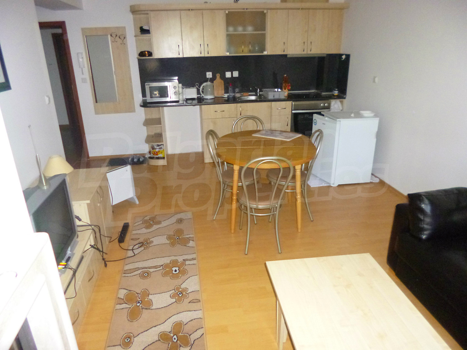 Located on the second floor the described 1-bedroom apartment is sold fully furnished and equipped, and you can immediately start living in it. The total area of the apartment is 62.25 sq.m., including the living area - 50.85 sq.m. and the common areas - 11.40 sq.m. It consists of a kitchen and living room in one premise, a bedroom, a bathroom with WC and a balcony with beautiful views of the surrounding pine forests. The rooms are fitted with laminate flooring, painted walls and PVC joinery. The heating is achieved by a fireplace in the living room and electric radiators. The final price of the property includes a basement with an area of 4.45 sq.m. and common areas of 1 sq.m.
