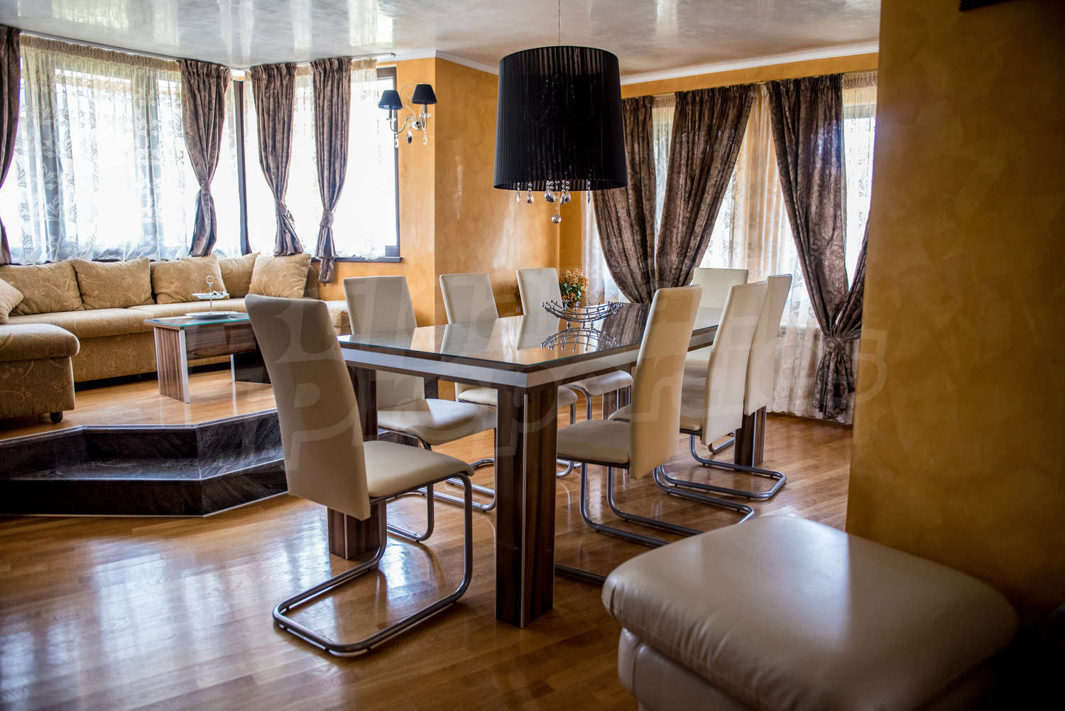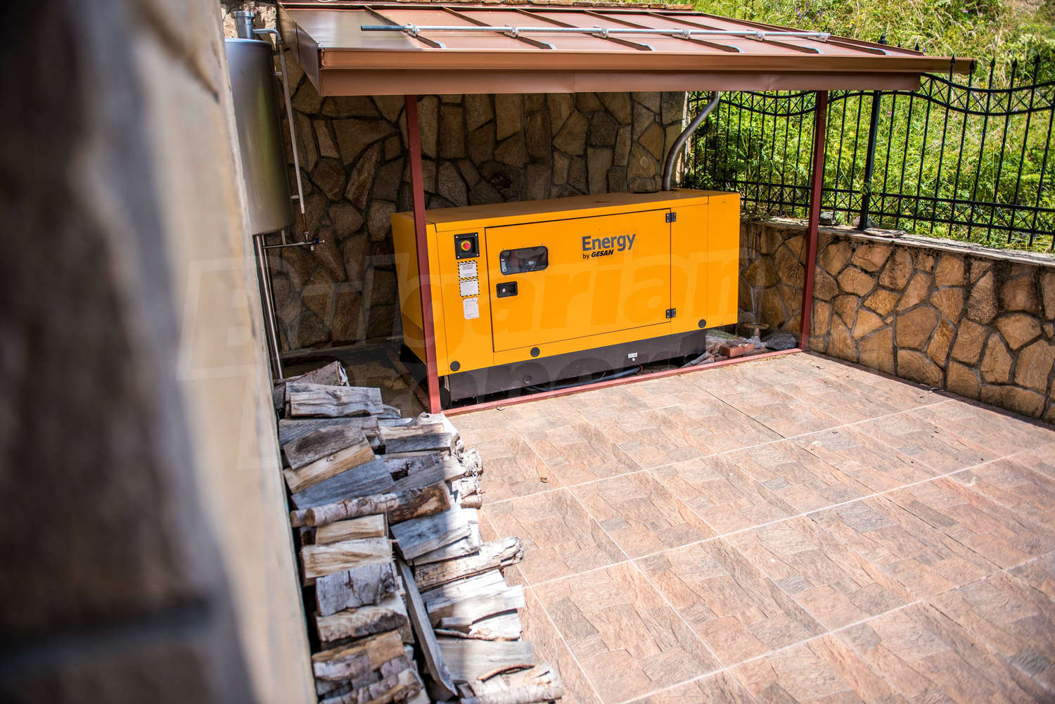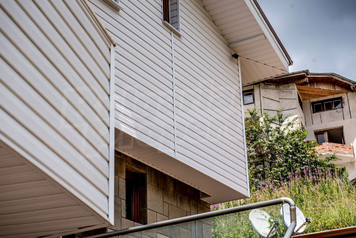 Besides the stylish furniture and high class equipment this home is completed with a 6-chamber windows with inner third seal Blue Evolution Salamadar with 4 seasons glasses (low-emission and 52 mm thickness) of the highest class. The dwelling has external insulation with 10 cm rock wool. There is underfloor heating with external sensors in front of both entrances of the house, the two terraces, the aggregate and the barbecue. The property has an internal "snow-melting" in the gutters from the roof to the ground. The house has a brand new roof, made with the latest technology with Swedish metal sheet and 50 year warranty. The property is available for sale with 24-hour video surveillance with 7 cameras.