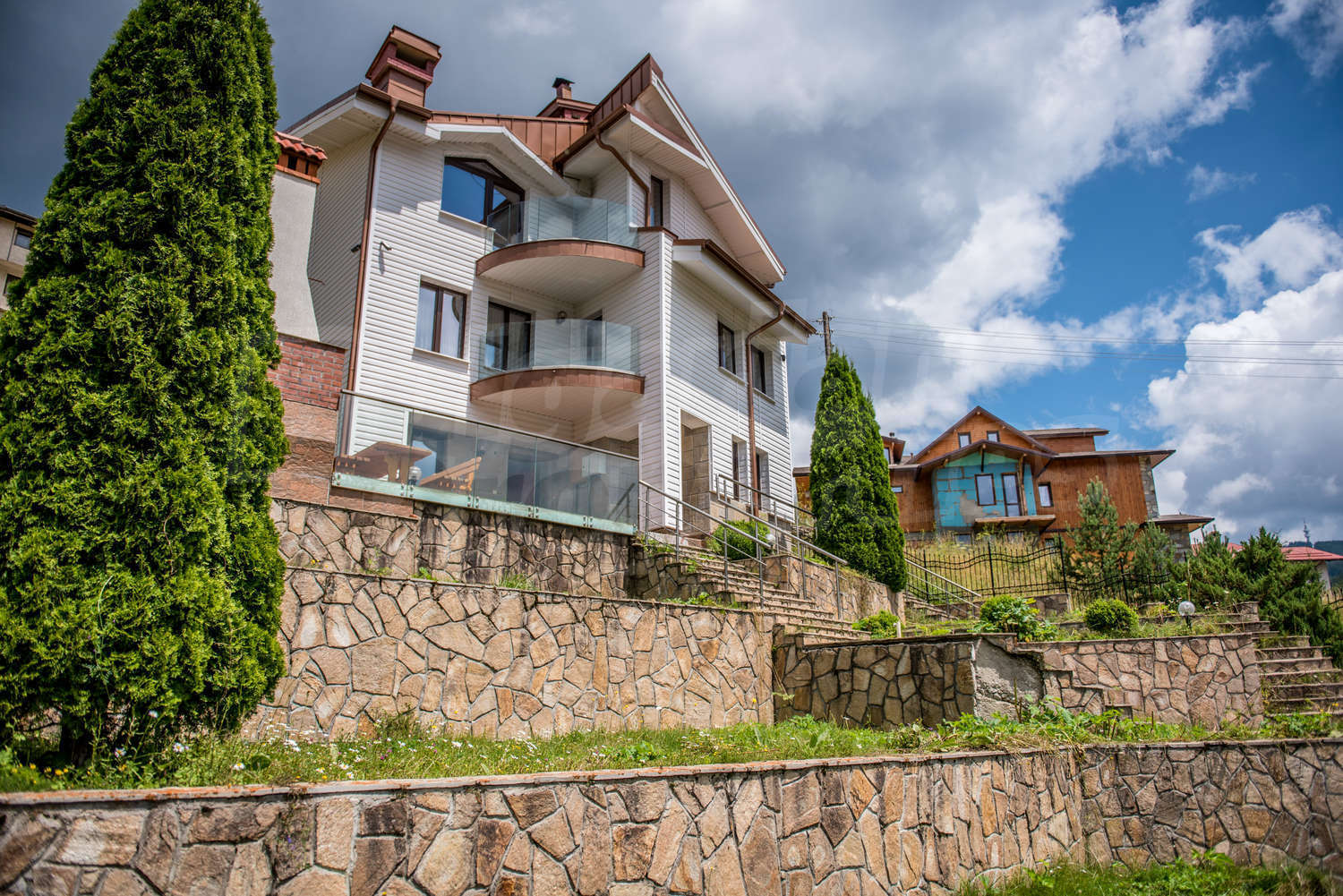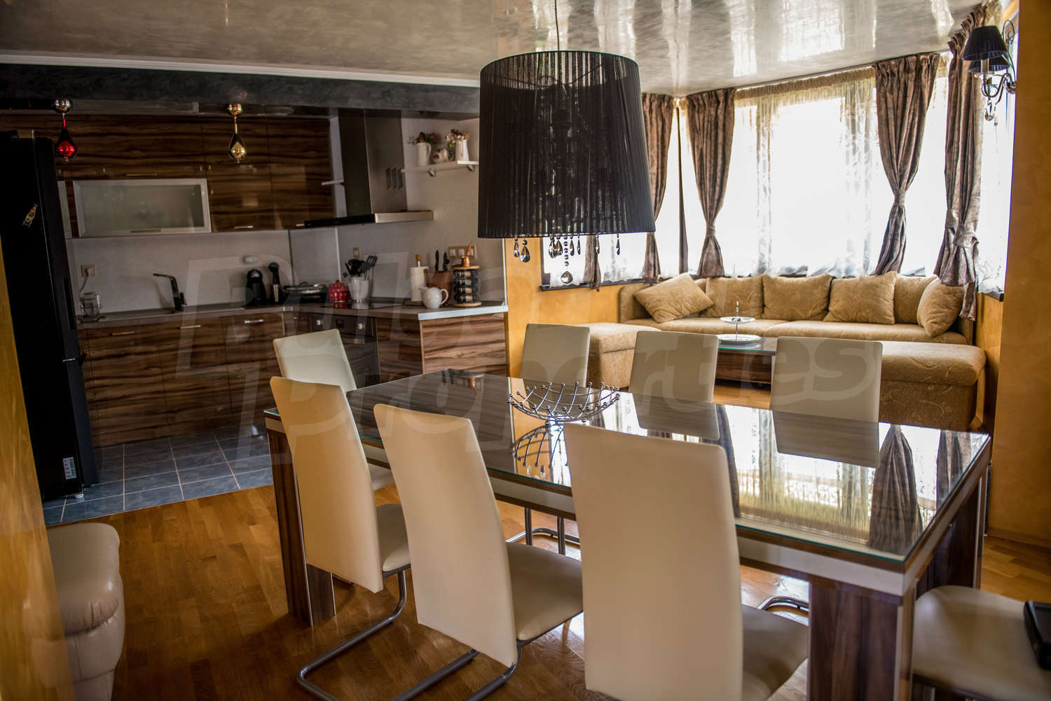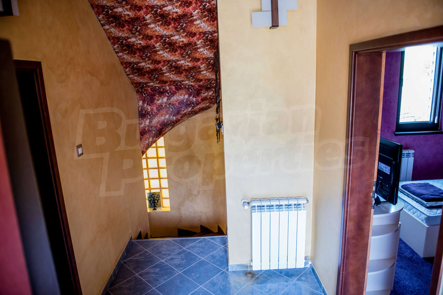 Besides the stylish furniture and high class equipment this home is completed with a 6-chamber windows with inner third seal Blue Evolution Salamadar with 4 seasons glasses (low-emission and 52 mm thickness) of the highest class. The dwelling has external insulation with 10 cm rock wool. There is underfloor heating with external sensors in front of both entrances of the house, the two terraces, the aggregate and the barbecue. The property has an internal "snow-melting" in the gutters from the roof to the ground. The house has a brand new roof, made with the latest technology with Swedish metal sheet and 50 year warranty. The property is available for sale with 24-hour video surveillance with 7 cameras.