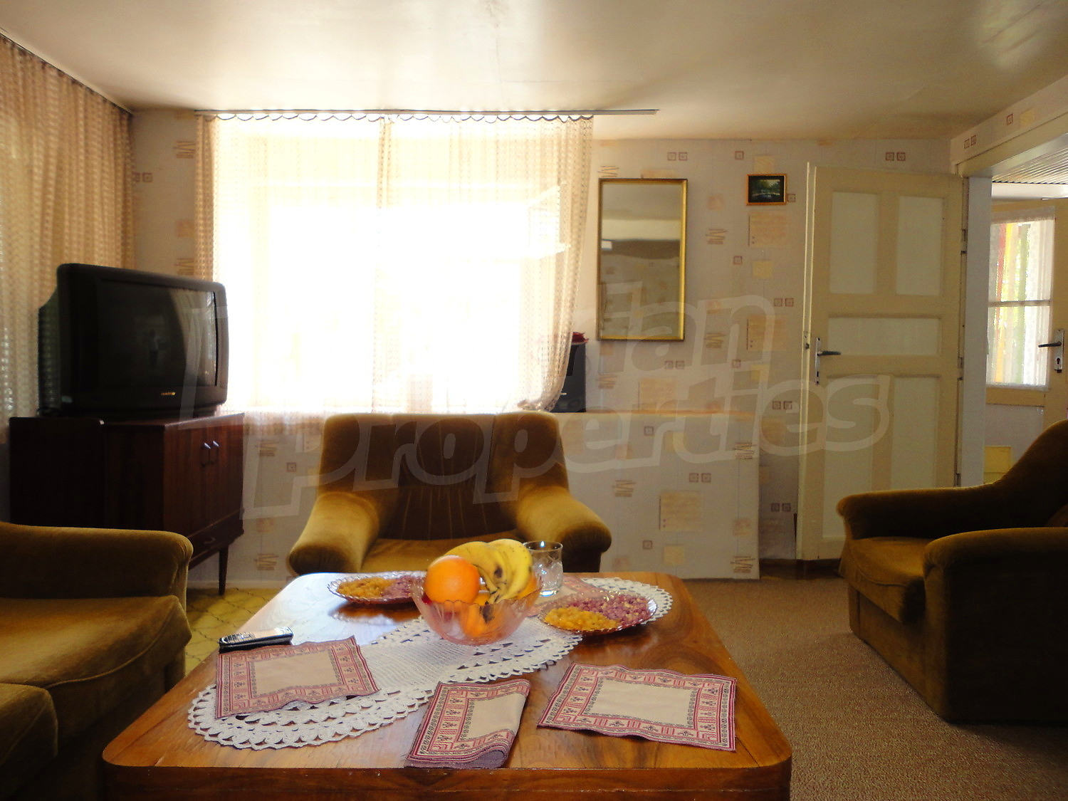 The house is in good condition and needs refreshment of the plasters and the woodworks. There is electricity and water in the property. The road to it is an asphalt one.