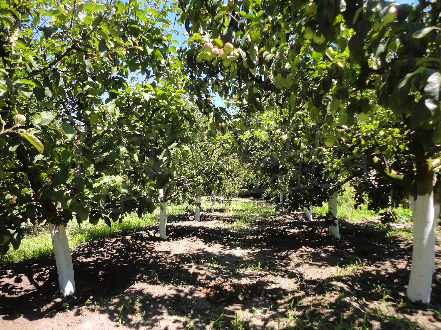 The garden is planted with fruit trees, flowers and trellis vine. There is also a swimming pool.