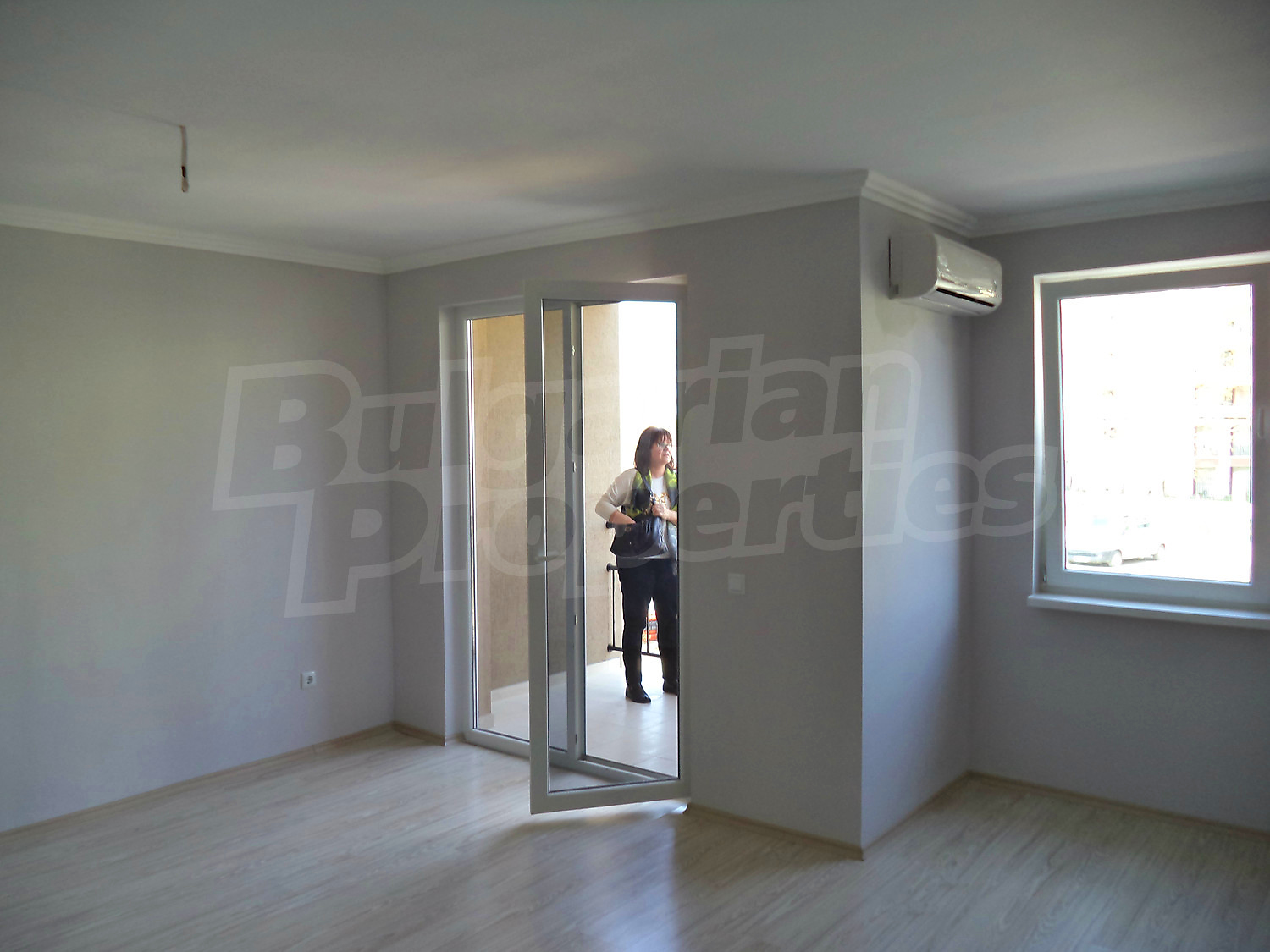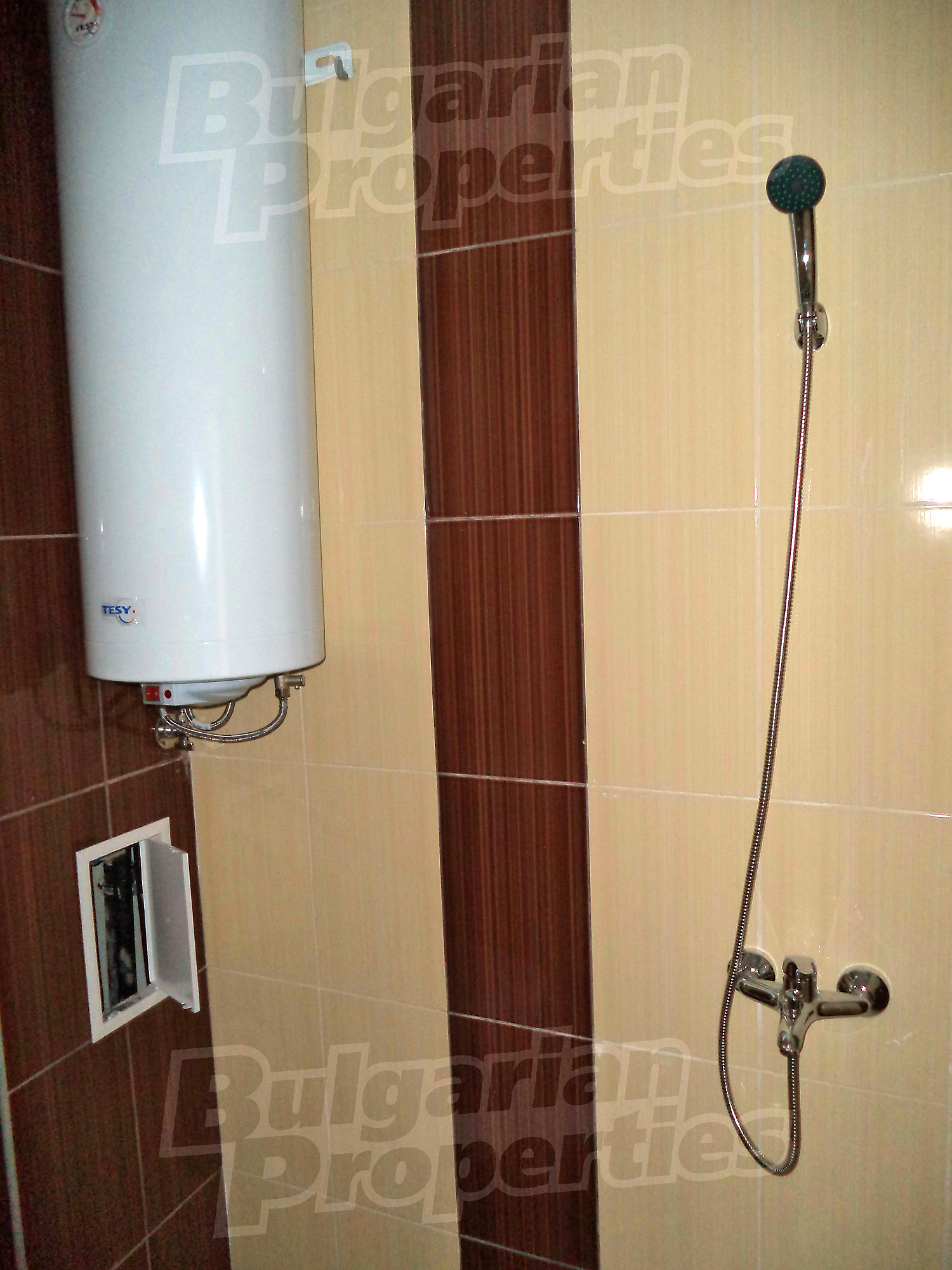 The newly-built apartment (2012) with an area of 46 sq.m. is finished with laminate and tiled flooring, painted walls and PVC joinery. It is located on the second floor and overlooks the surrounding buildings. The flat has cable TV, internet and security system, and the building is equipped with lift.