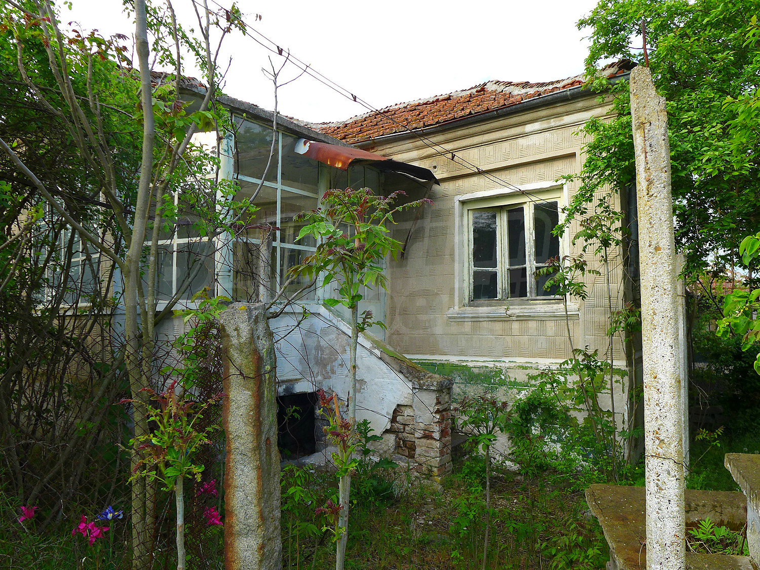 The house consists of glazed hallway, lounge, 3 rooms. The house needs total renovation. The floor is cement, the walls come with old plaster, wooden window frames. The house has a garden with an area of 1680 square meters.