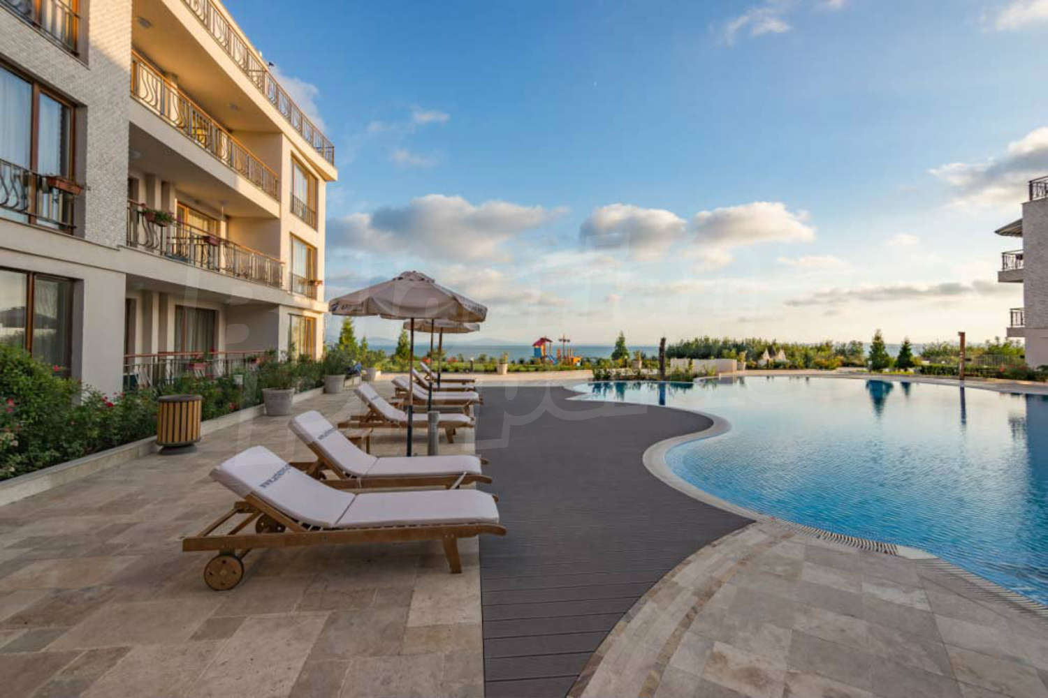 Diamond Beach is a gated complex, designed to combine all necessary conditions for complete relaxation and year-round livind with seafront location. It has contemporary design, high quality of the newly-built homes with good functional layout and various sizes, which allows to choose between the great number of dwellings. The property is situated on a hill on the beach with magnificent view of the Bourgas Bay with its beautiful beaches.