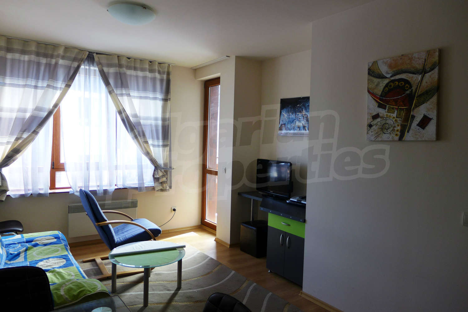 Fully furnished 1-bedroom apartment in the gated complex Panorama Resort & SPA, which is located in the St. Ivan Rilski area, 750 meters from the lift. The airports in Sofia and Plovdiv are 160 km away and the train station of Bansko - 1 km.