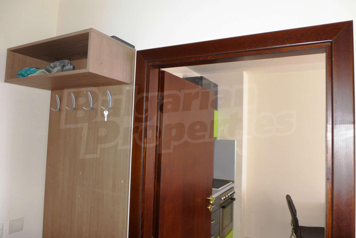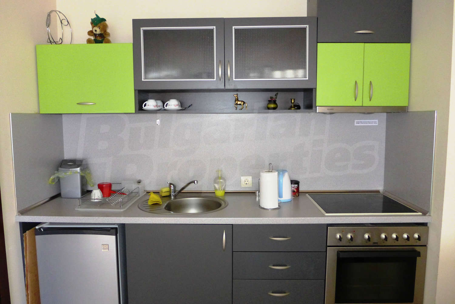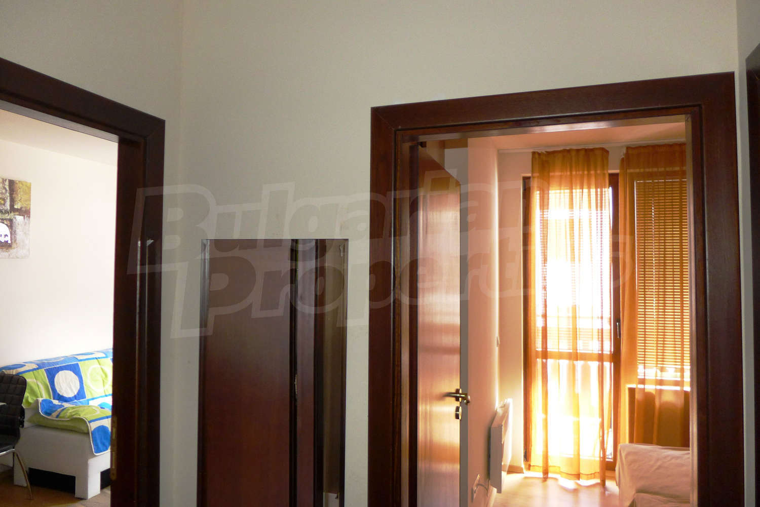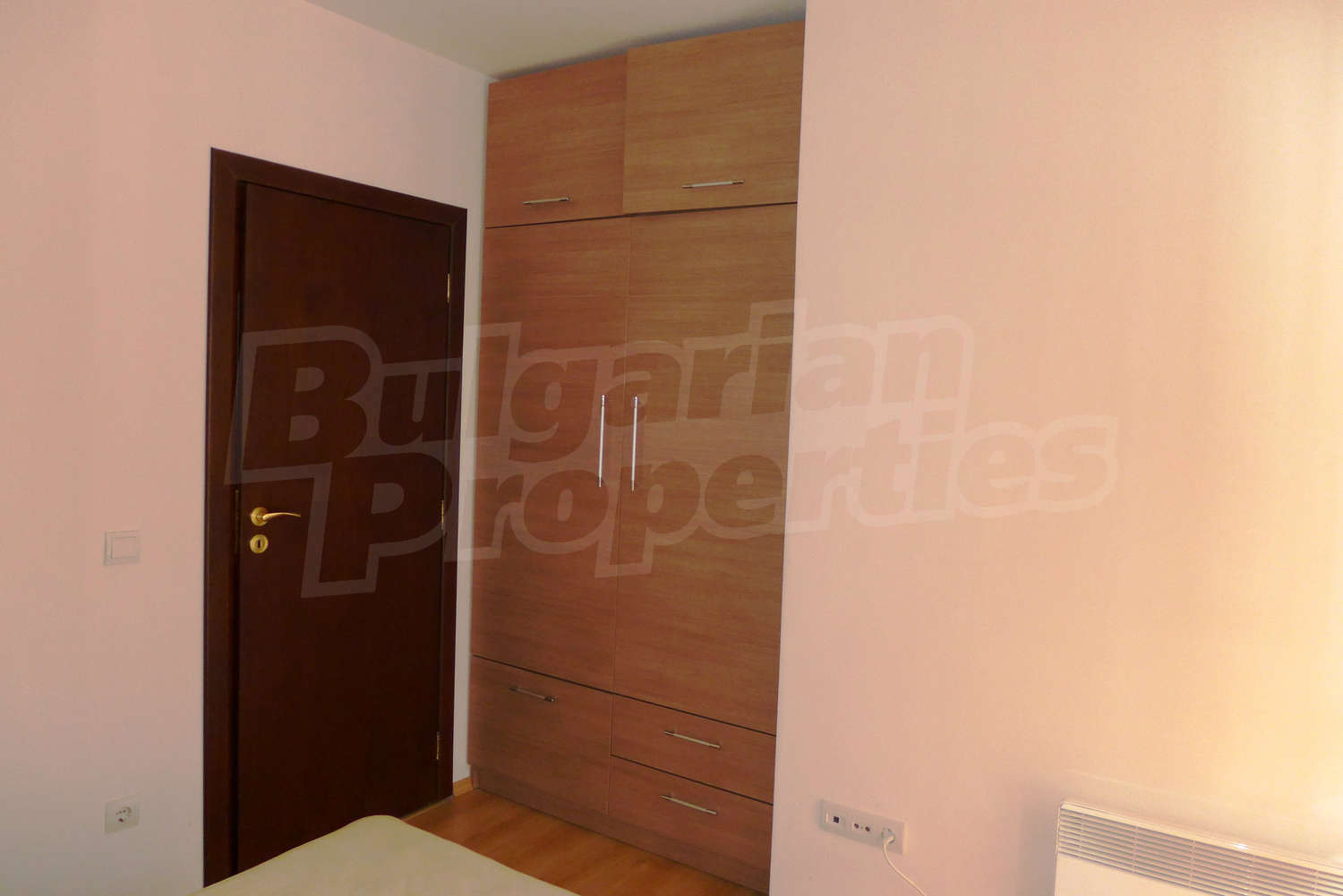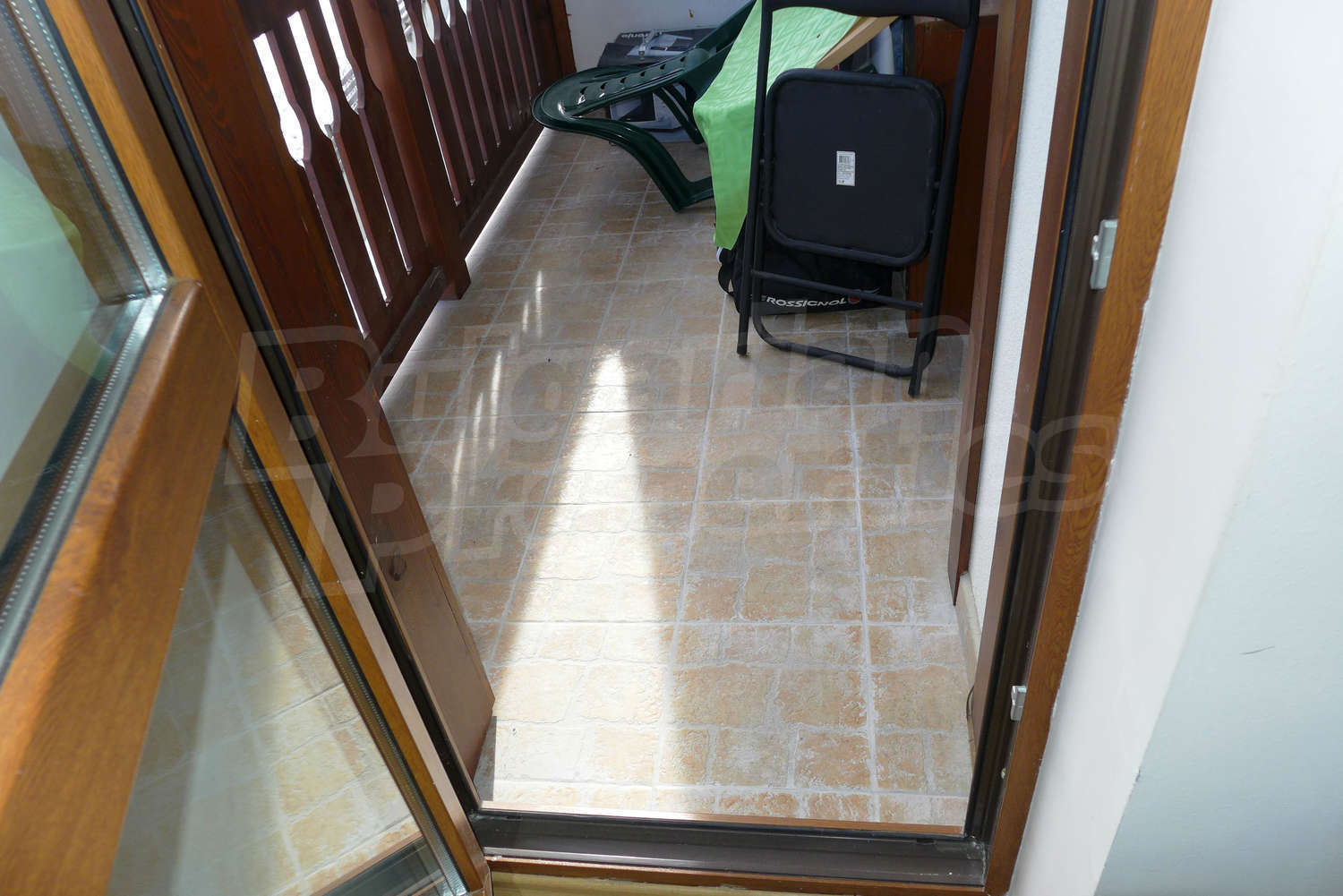 The newly-built apartment (54 sq.m., 2008) is located on the first floor, facing east with beautiful views of the mountains and the surrounding buildings. The joinery is PVC, the flooring - laminate and tiles, and the walls are painted. The apartment has one balcony (terracotta tiles and wooden railing). The kitchen comes with furniture and built-in oven, a refrigerator, a sink, a mixer. The living room - with a two-seat sofa with a coffee table, a desk, paintings. The bedroom – a double bed, tables, a wardrobe. The bathroom with WC - walls - faience, flooring - tiles, a shower box, a porcelain sink with mixer, an electric water heater. The heating is by electric radiators. The flat is equipped with cable TV and Internet.