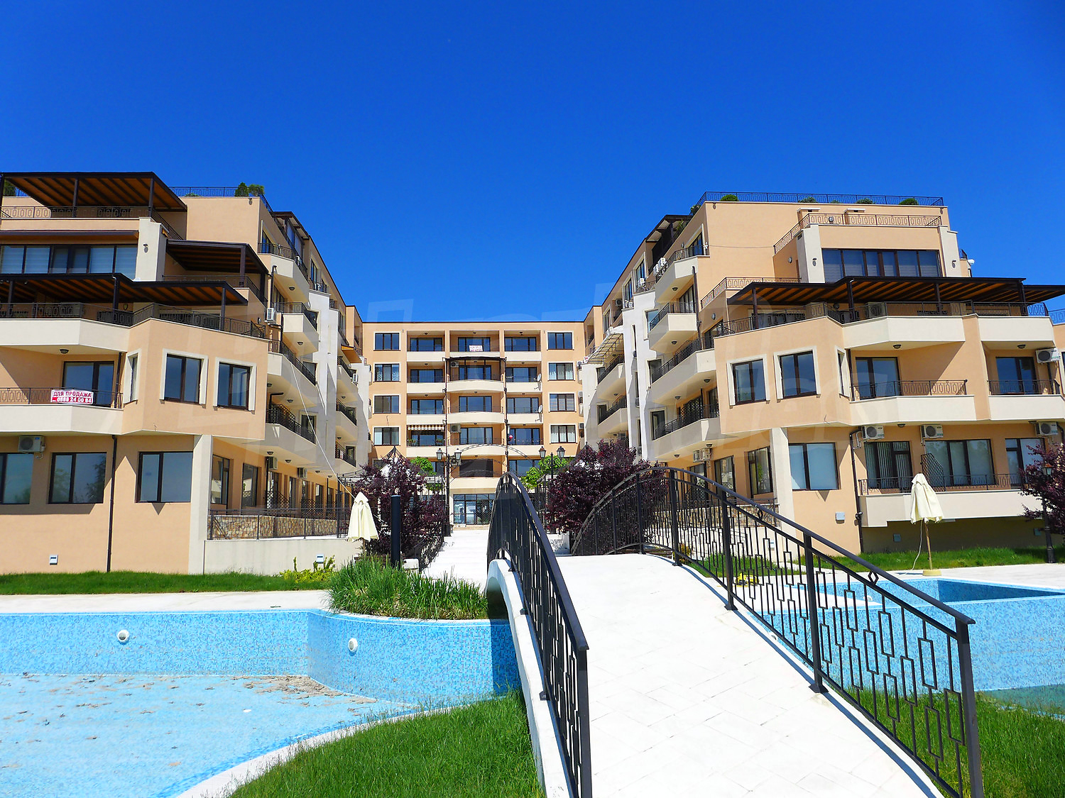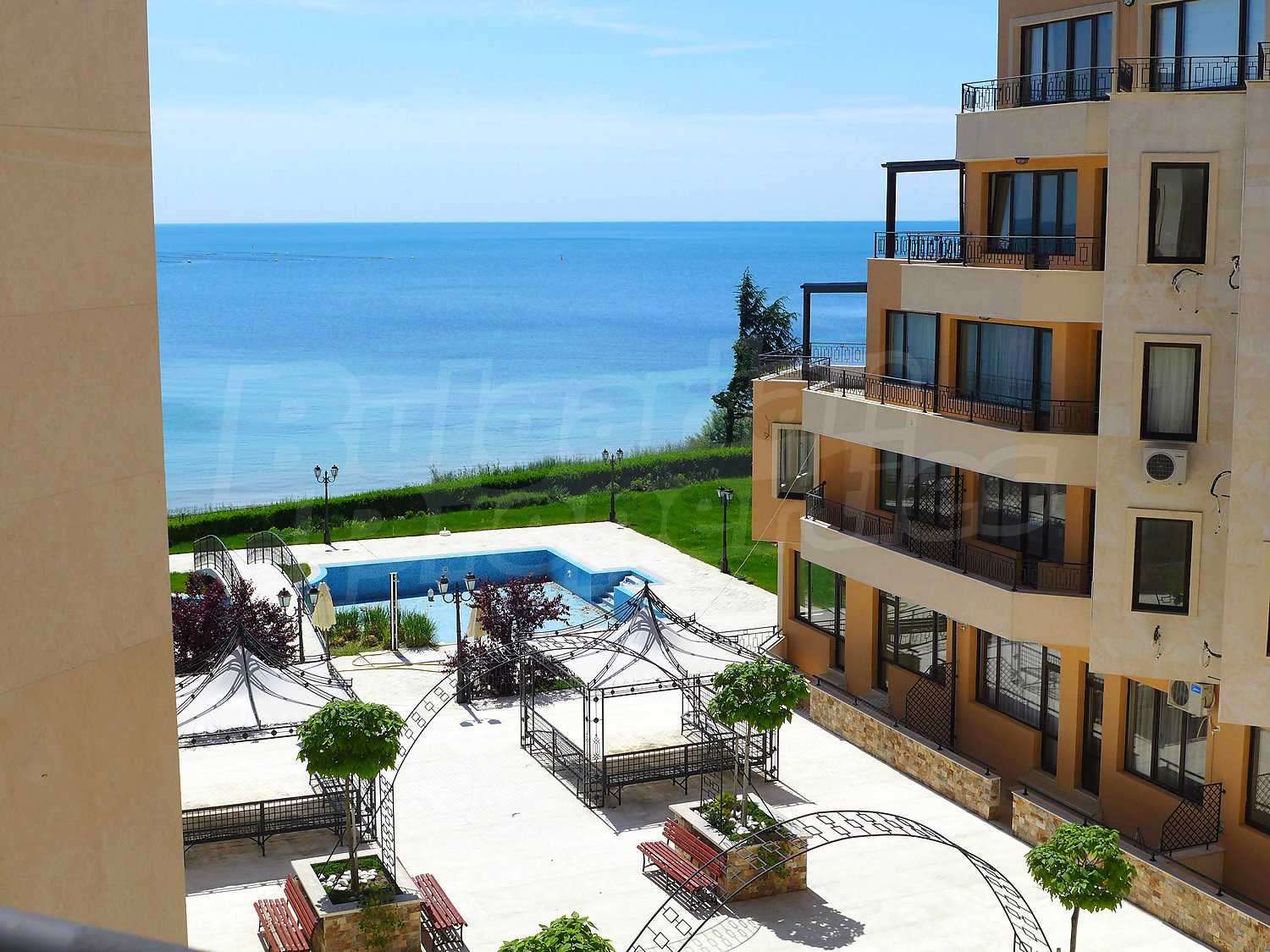 We offer for sale three 1-bedroom apartments with beautiful sea views in the gated complex Rich II, with quiet and peaceful location at the sea (50 m), near the main beach in the holiday resort Ravda, close to shops and restaurants, walk alleys. The complex is suitable for permanent residence. The international airport of Burgas is 25 km away.