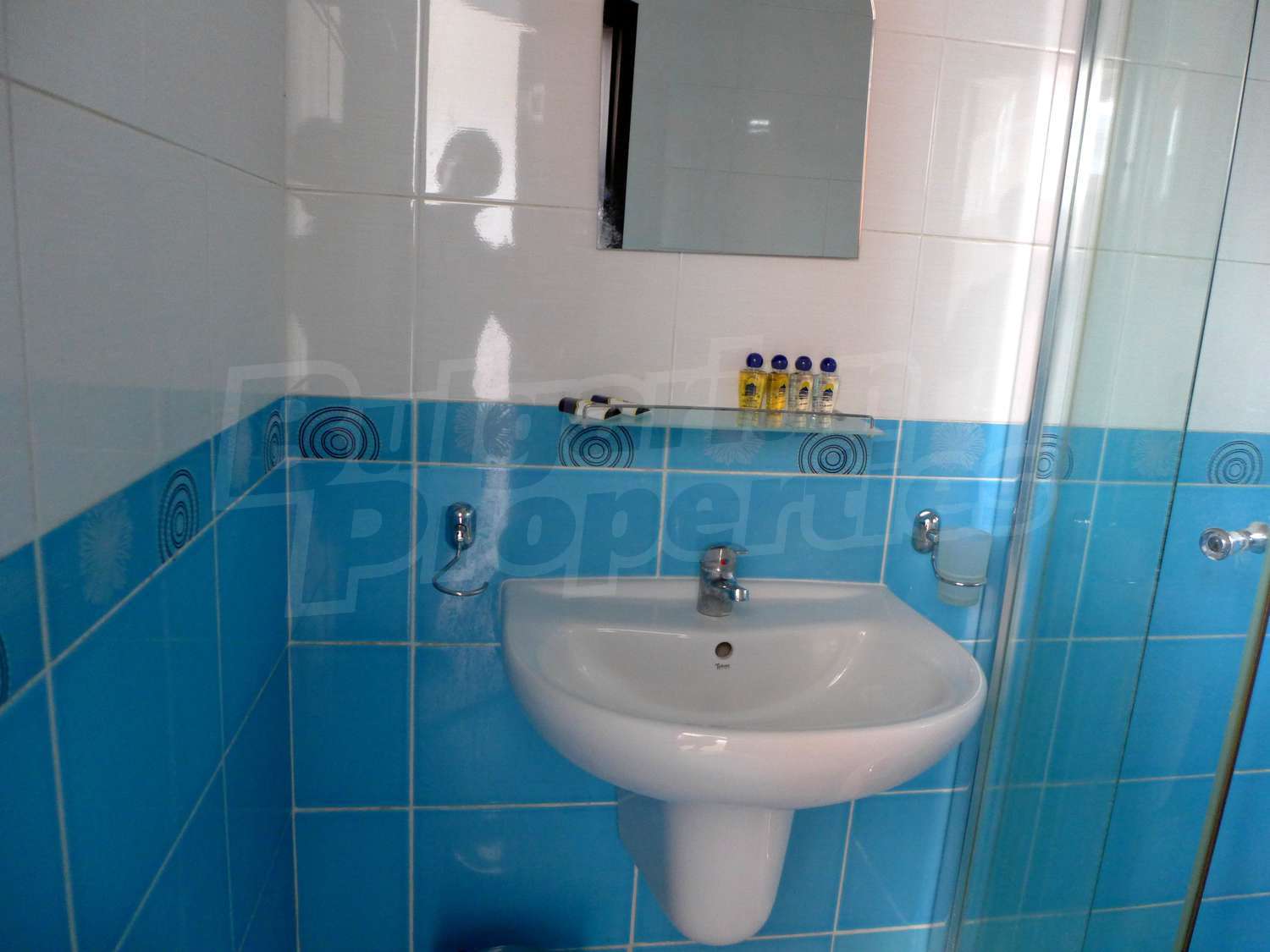 The apartment is finished with high quality materials: floor – terracotta, walls – latex, PVC Windows. There is also a cable TV and Internet. The building has an elevator, reception, security/video surveillance. The offered apartment is suitable for short and long term rental. The annual fee for maintenance of the complex is 9 Euro per sq. m. Excellent apartment for investment.