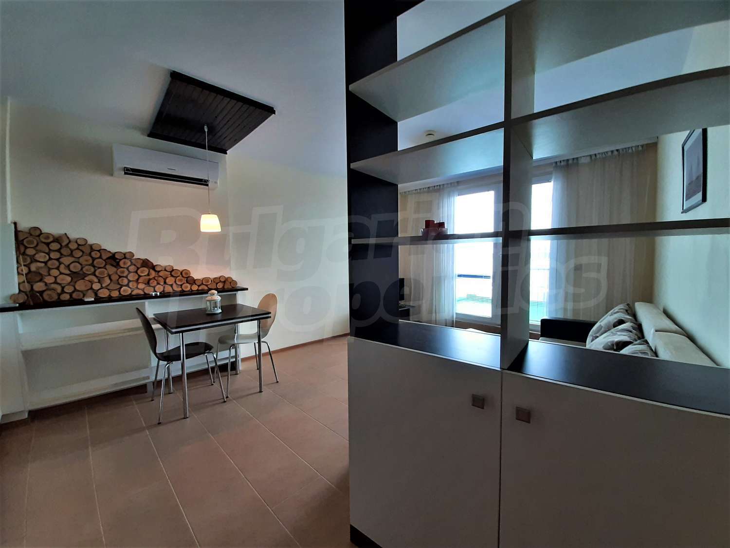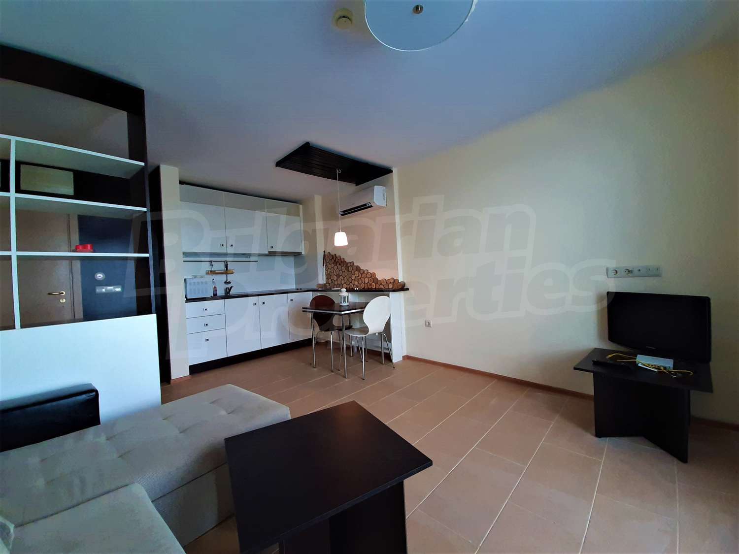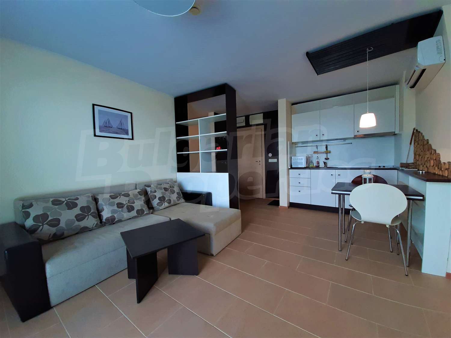 We offer for sale an one-bedroom apartment (fully furnished and equipped) in the gated complex Black Sea Star - a luxury apart-hotel located between two of the most beautiful southern Black Sea resorts in Bulgaria - Sozopol and Chernomorets - 1.5 km from Chernomorets and 5 km to the town of Sozopol. The apartment offers spectacular sea and beach views and it is only 100 meters from the camping Gradina. Bourgas International Airport is 25 km south of the complex.