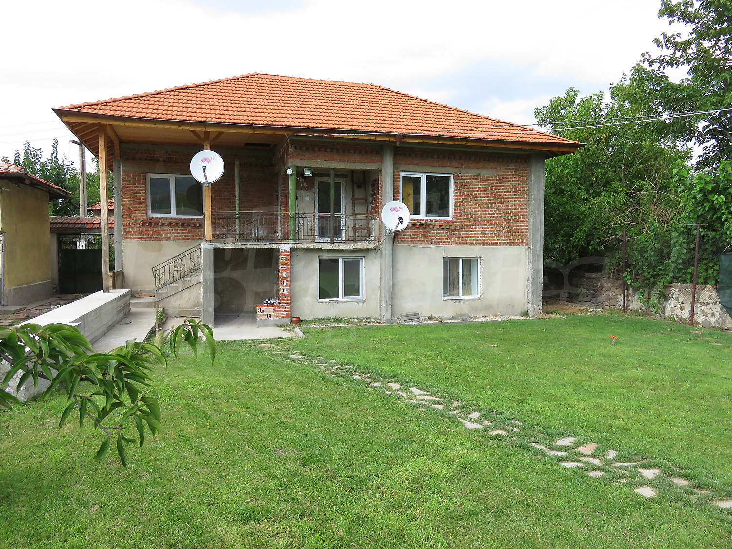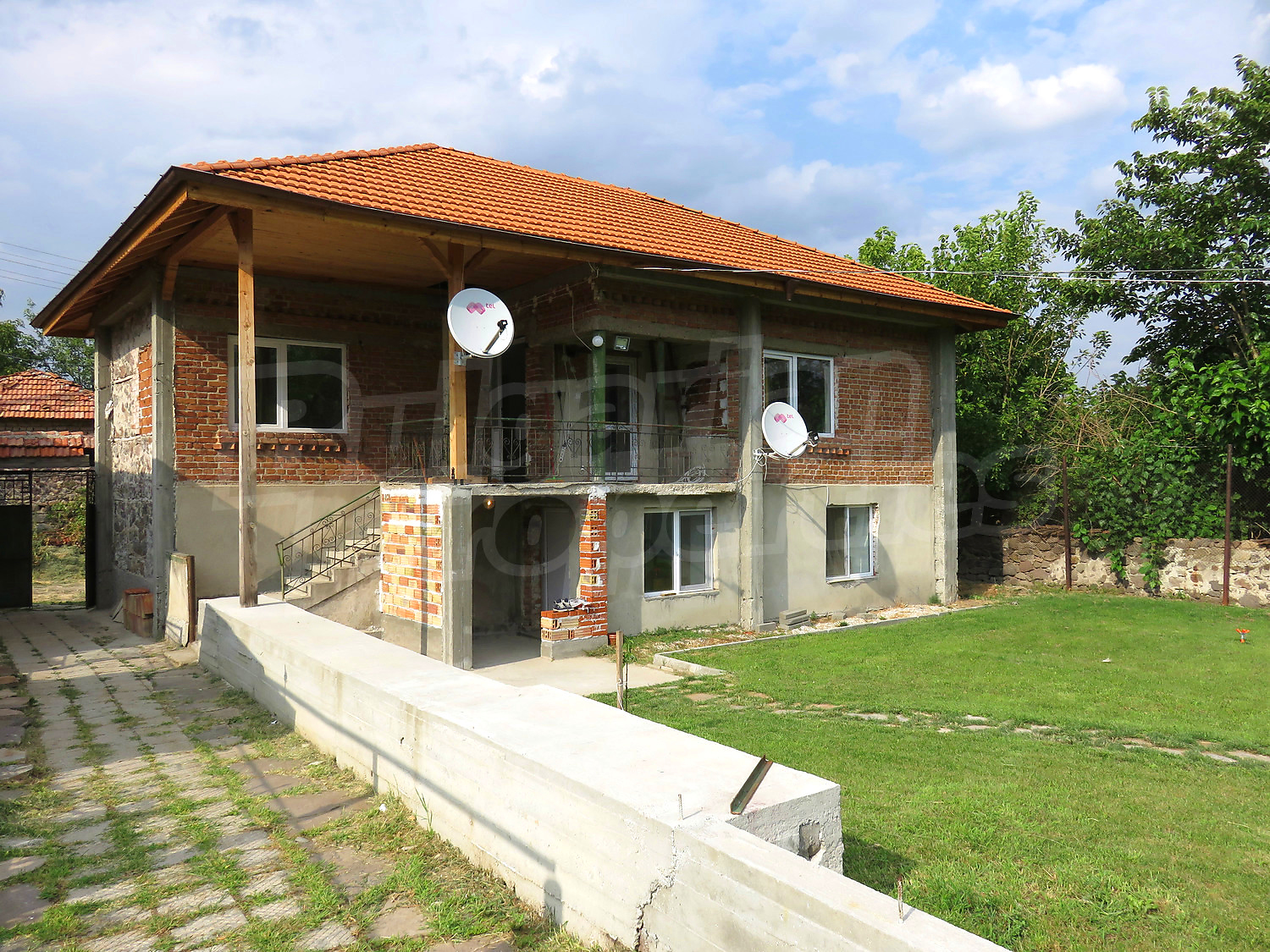 The renovated house is facing south, with an area of 150 sq.m. + a garage and parking lot for many vehicles.