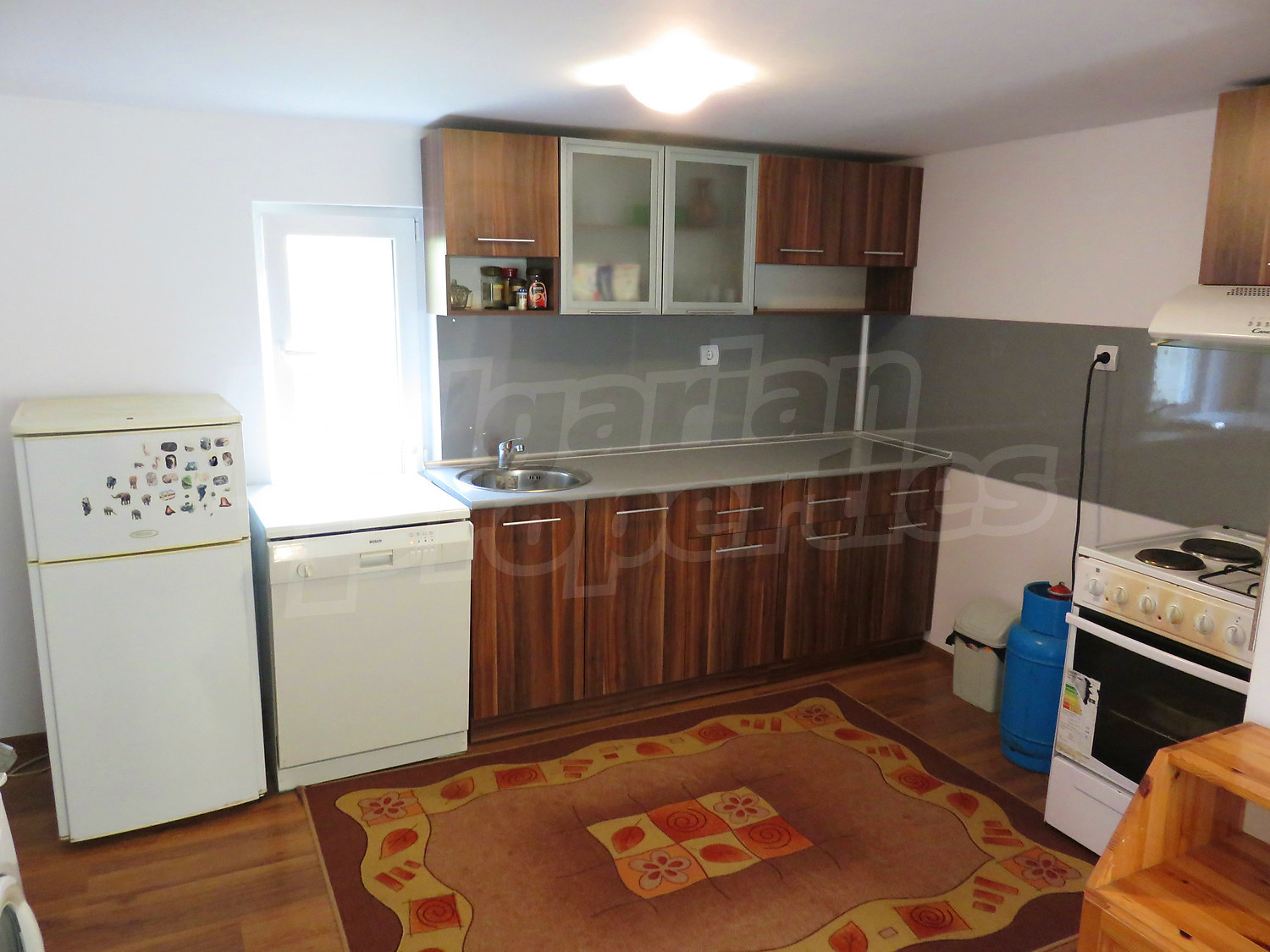 The heating is with electricity and wood. The property is supplied with water (a well, water drilling) and sewerage system. The property is available for sale with the furniture and equipment shown in the photos. The yard is 810 sq.m., planted with fruit trees and equipped with a shed with BBQ and oven.