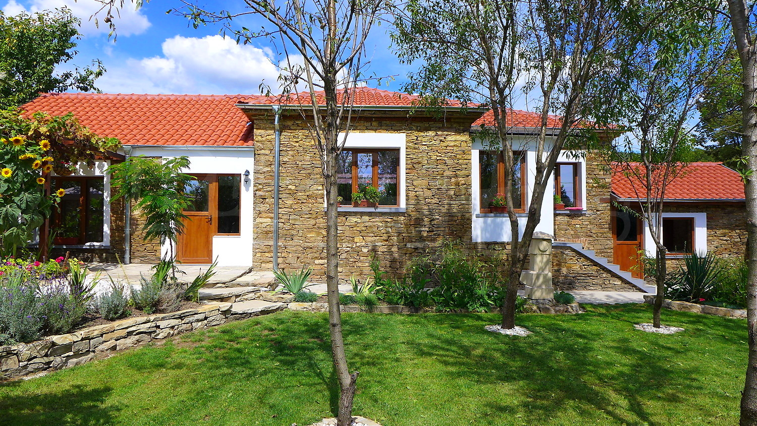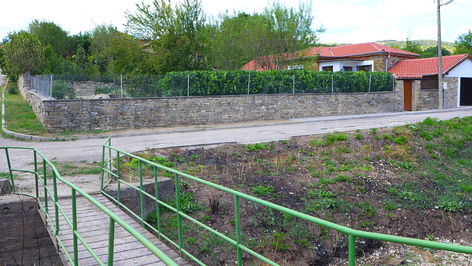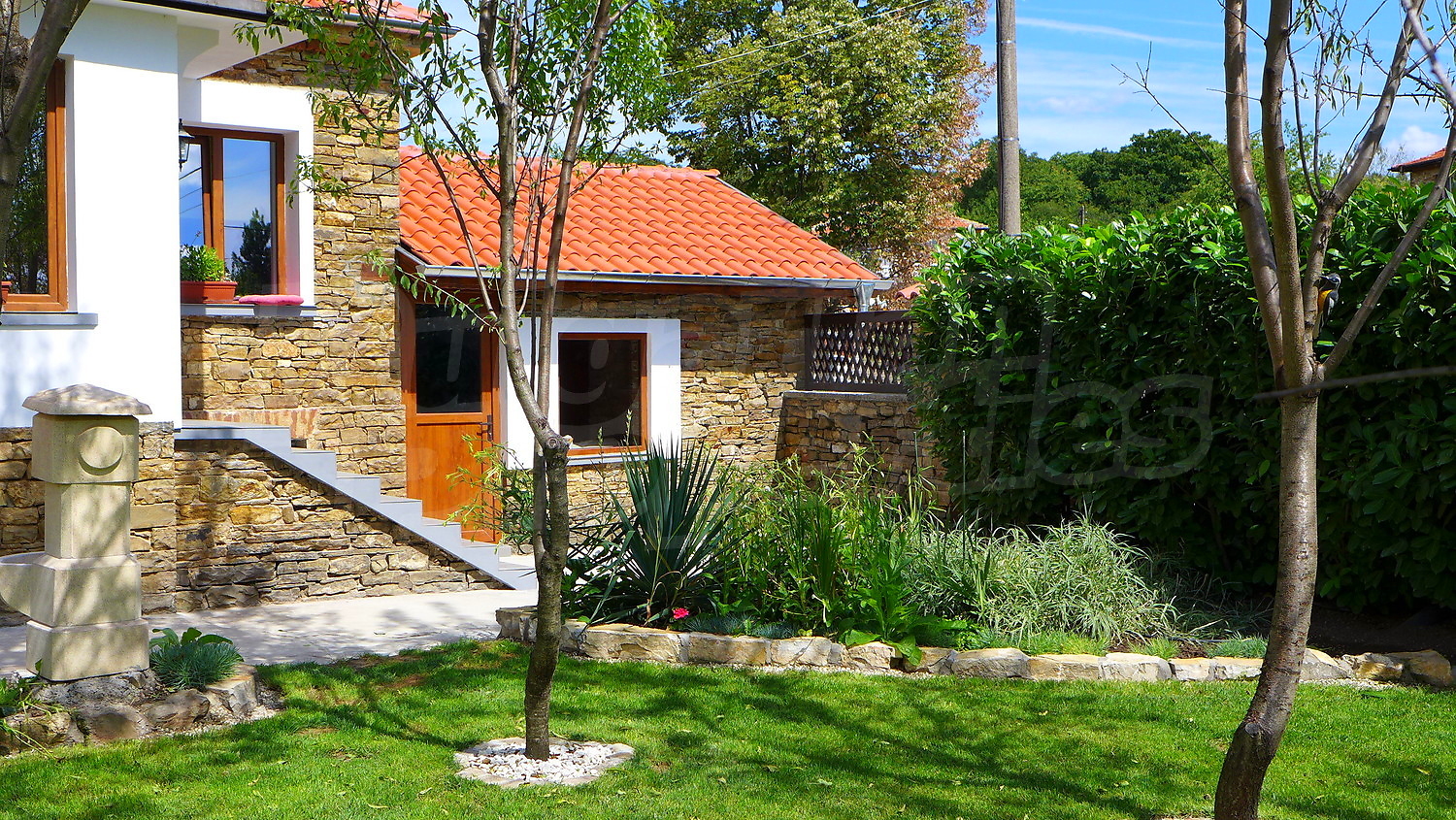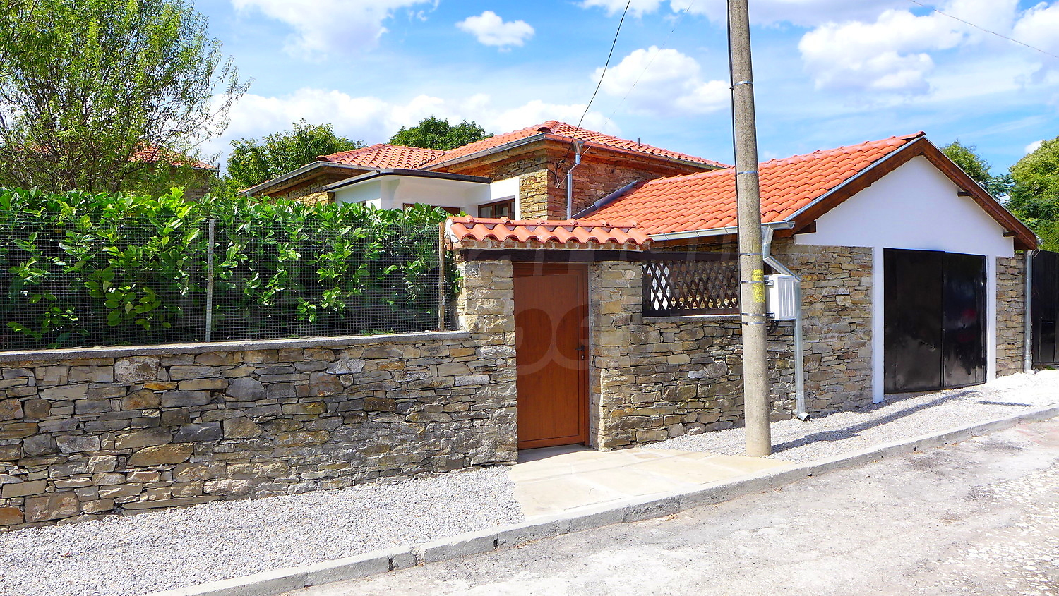 The property consists of one storied house with area 80 sq. m, a garden 580 sq. m and a garage. The living area is distributed between an entrance, a corridor, a living room, a kitchen, 2 bedrooms and 2 WC/bathrooms. The floorings are finished with laminate parquet and terracotta tiles, and the windows have PVC frames. The house itself is built from bricks and stones.