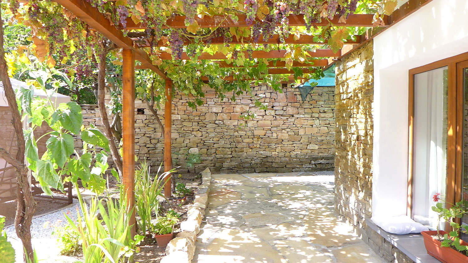The garden is well maintained. It is planted with almond trees, fruit trees, a fig tree, a trellis vine, flowers and decorative bushes. There is irrigation system.