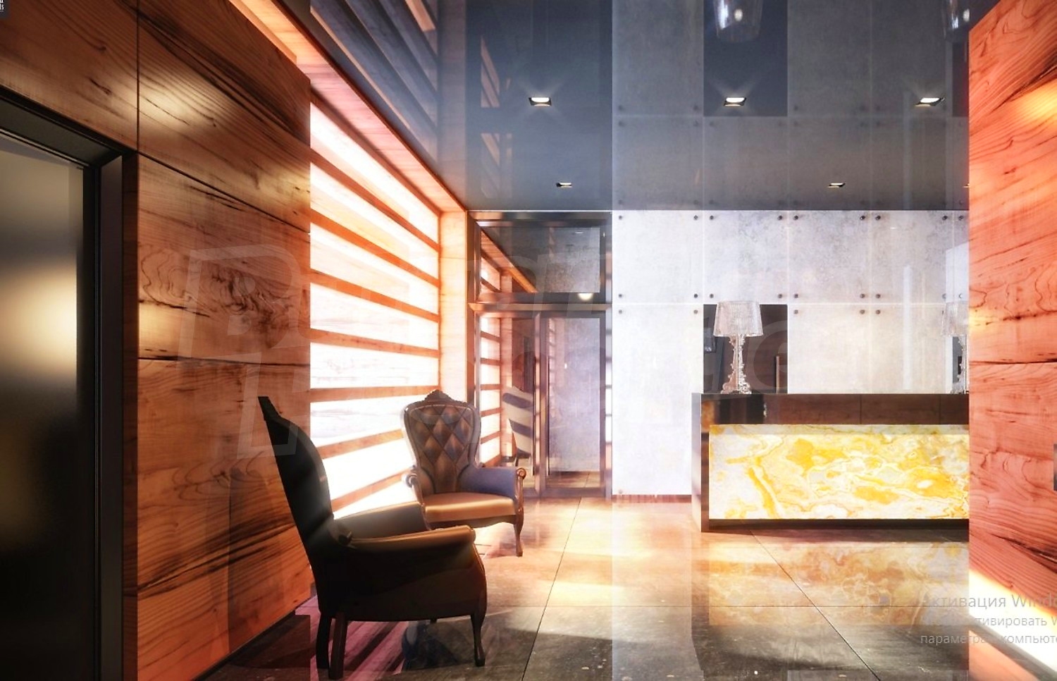Common areas are made on the design project of high quality materials. Independent heating and water supply, fire fighting systems and smoke removal.