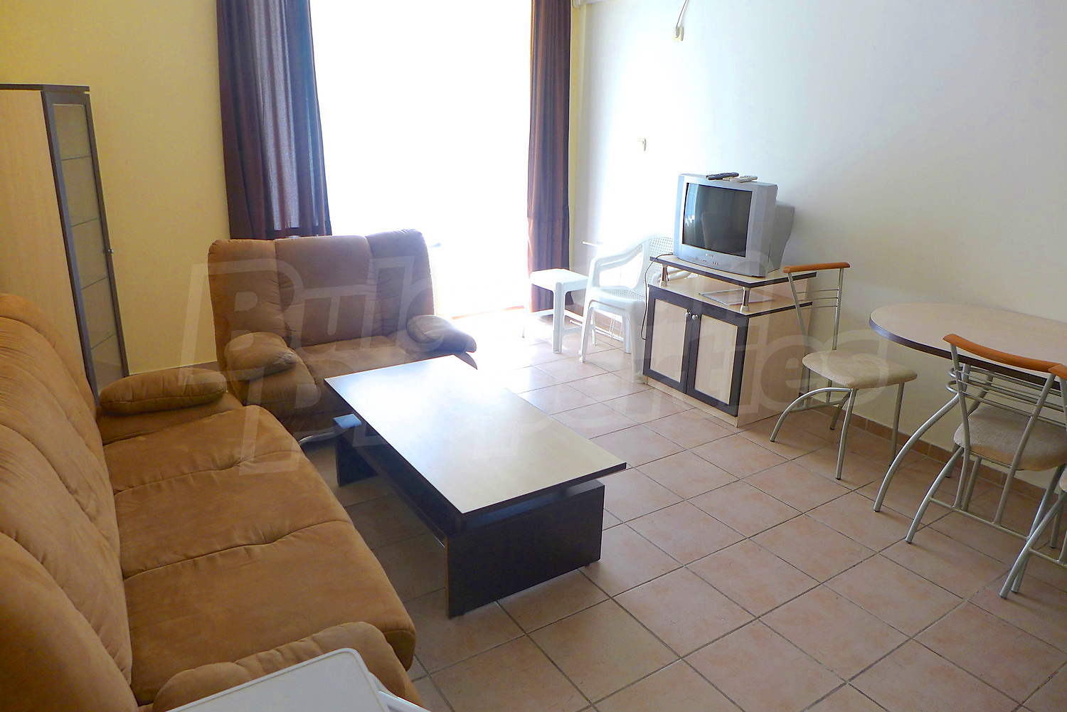 The apartment is spacious and sunny. Sold fully furnished and equipped with air conditioning and wiring for cable TV. The annual fee for maintenance of the complex is 8.5 Euro per square meter.