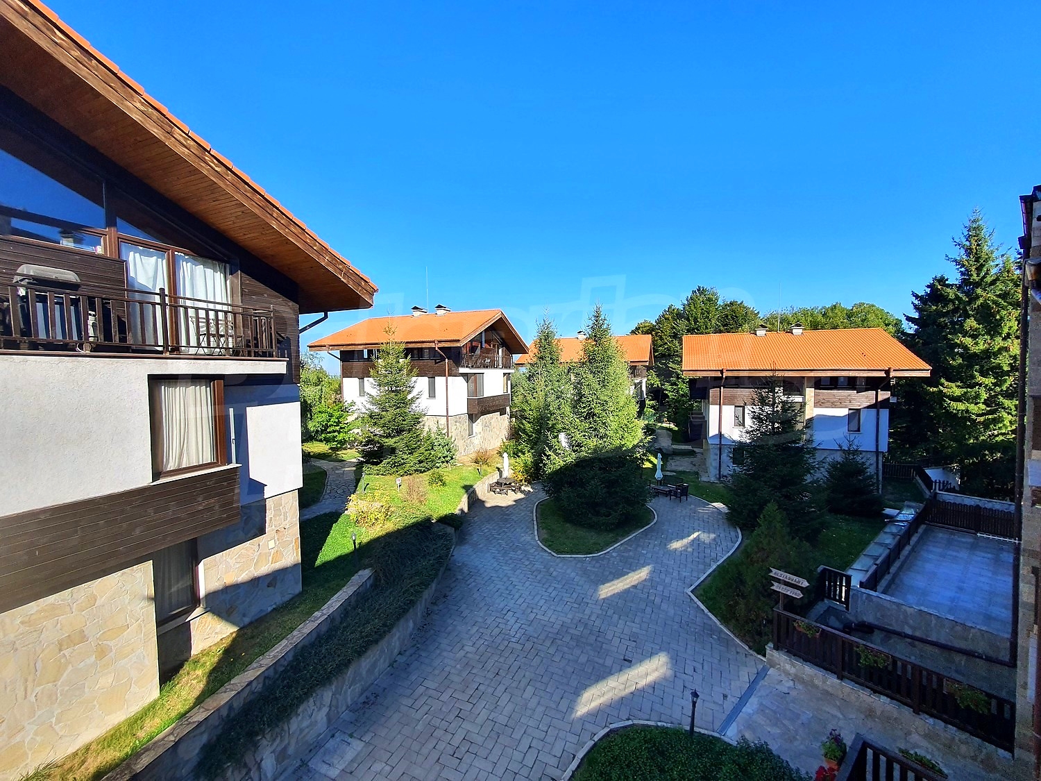 The complex is located only an hour drive from the capital Sofia (70 km), some meters from the lift of the Super Borovets project. The complex is set at 1310 meters above sea level, amidst picturesque landscapes and quietness.
