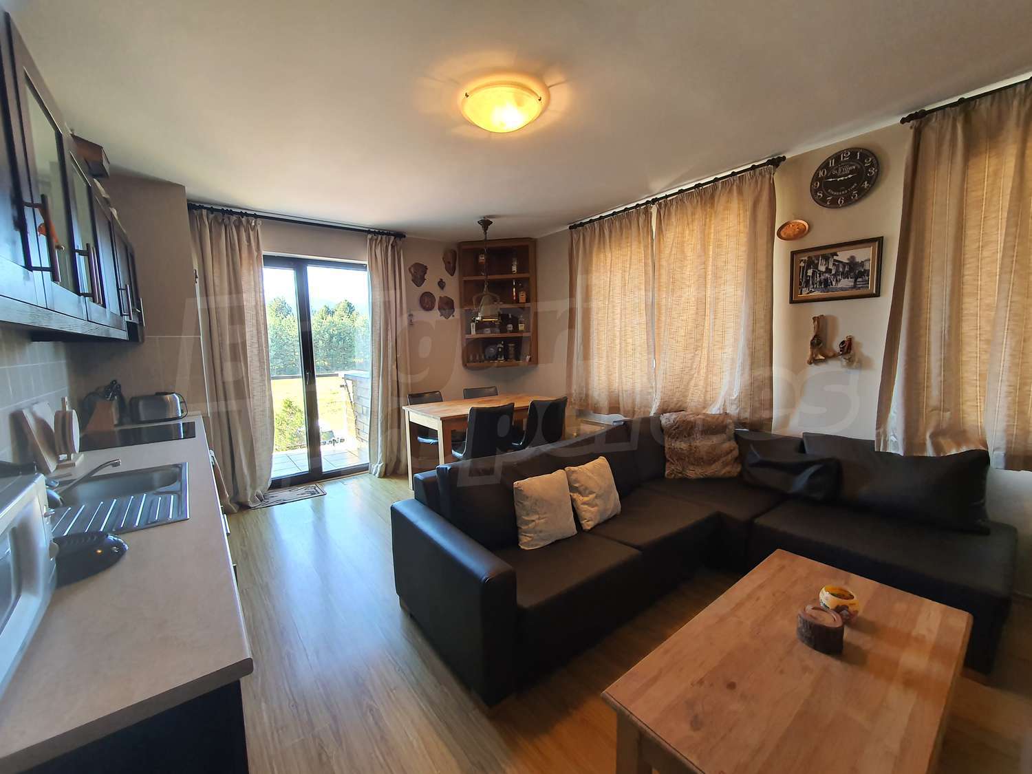 Fully furnished two-bedroom apartment in gated complex Chamkoria, set outside the popular ski resort Borovets. The complex consists of villas and apartments constructed in the traditional alpine style, revealing beautiful views of the Rila, the Balkan and the Vitosha mountains and the evergreen forests.