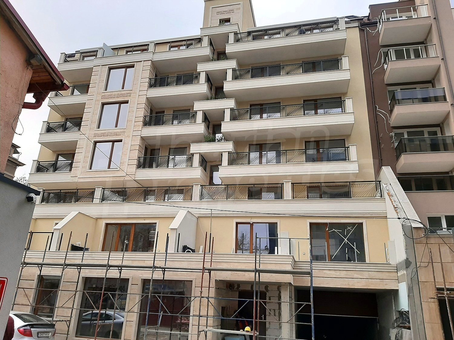 According to the project, the building has 8 above ground floors and underground guarded parking, elevator. New and traditional and time-tested materials and technologies in a modern and energy-efficient building. The facades of the building are in classic style, with linings and accents of travertine and natural materials. Luxurious common areas.