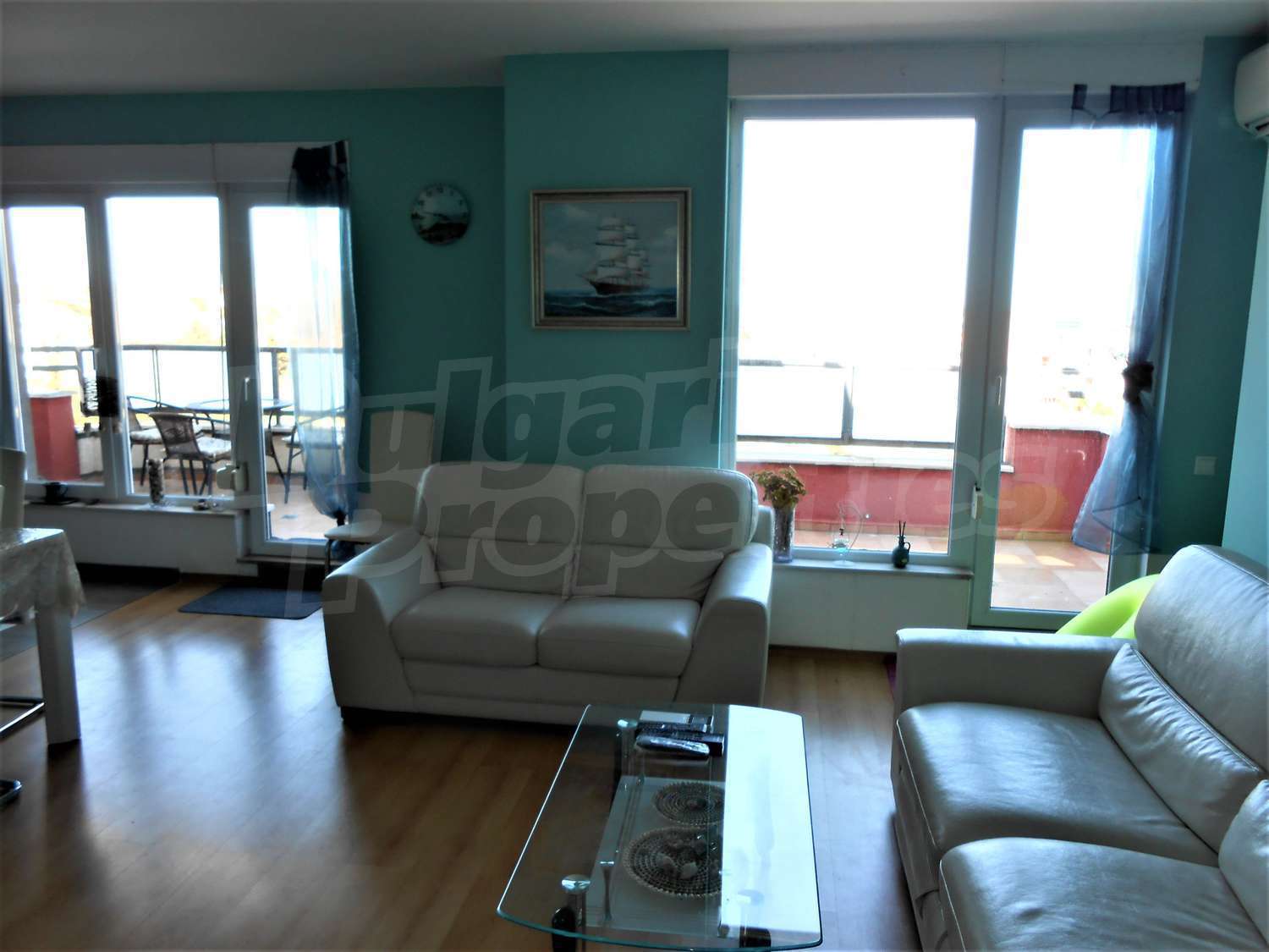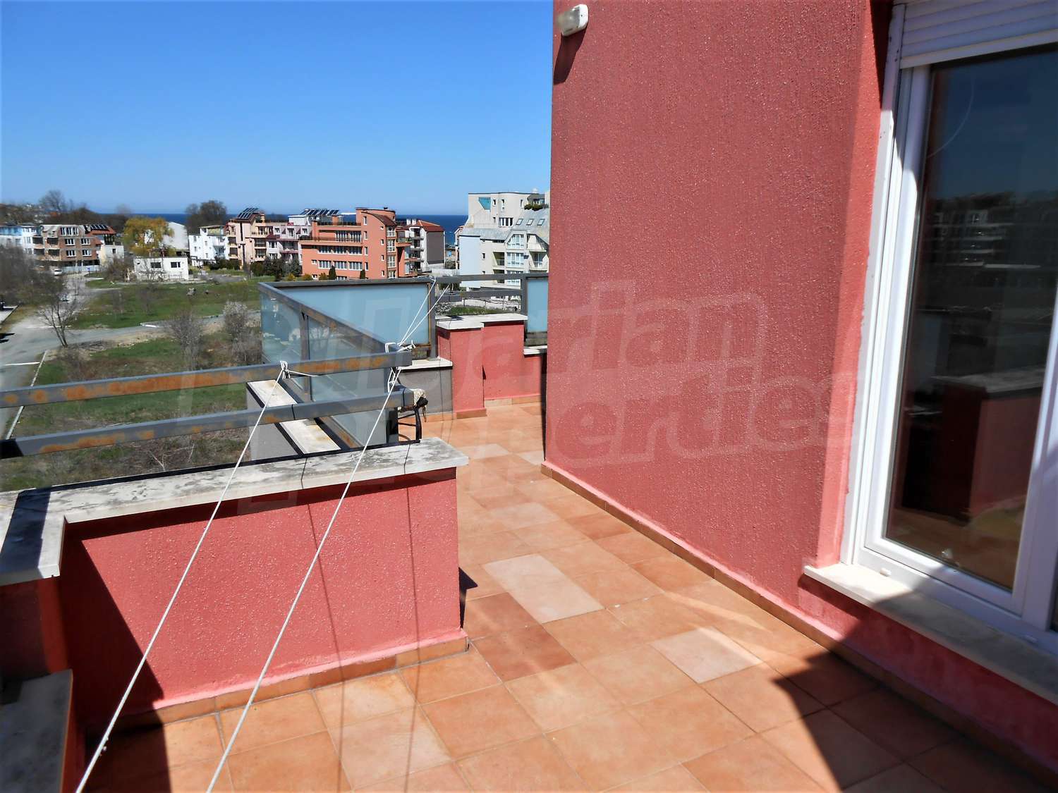 The large terrace is accessible from one of the bedrooms, the kitchen and the living room - 41.67 square meters, while the small terrace is accessible from the second bedroom and has an area of 4.74 square meters. All rooms and terraces are overlooking the sea.