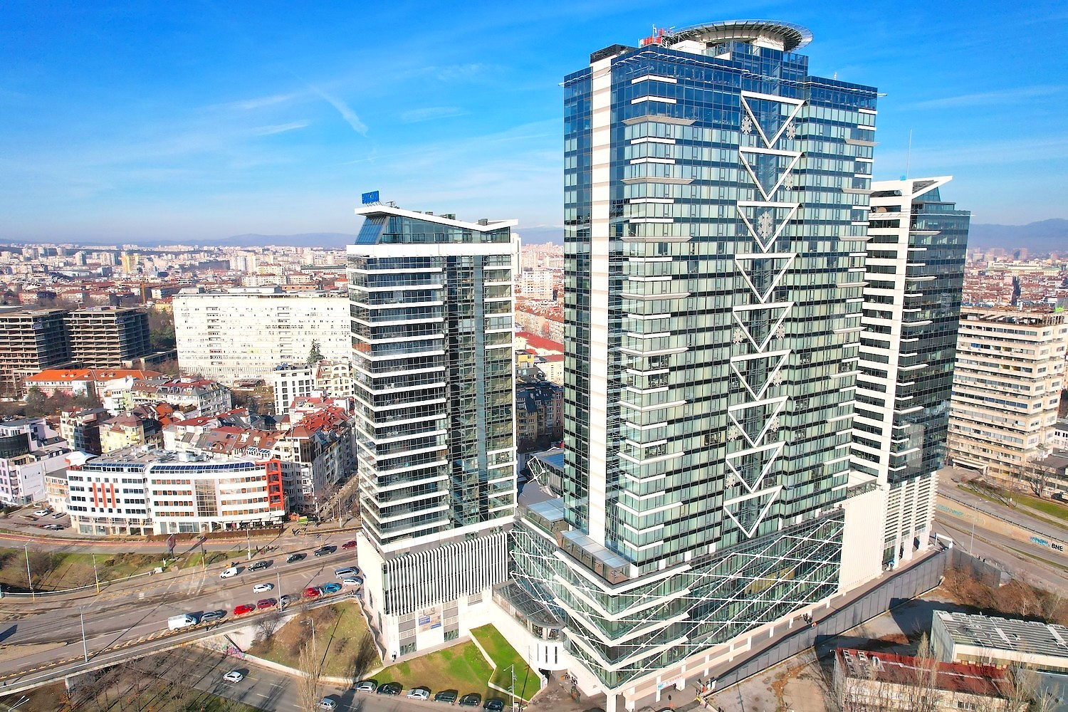 Ěčëĺíčóě Öĺíňúđ ńĺ ńúńňîč îň îôčń ńăđŕäŕ íŕ 18 ĺňŕćŕ, 5-çâĺçäĺí őîňĺë íŕ 32 ĺňŕćŕ, ćčëčůíŕ ńăđŕäŕ íŕ 24 ĺňŕćŕ, ňúđăîâńęč öĺíňúđ č ďŕđęčíă íŕ ďĺň íčâŕ. Ćčëčůíŕňŕ ńăđŕäŕ ĺ îđčĺíňčđŕíŕ íŕ ţă ń íĺâĺđî˙ňíč ăëĺäęč ęúě Âčňîřŕ č ďŕđęŕ, ęŕęňî č ęúě öĺëč˙ ăđŕä.