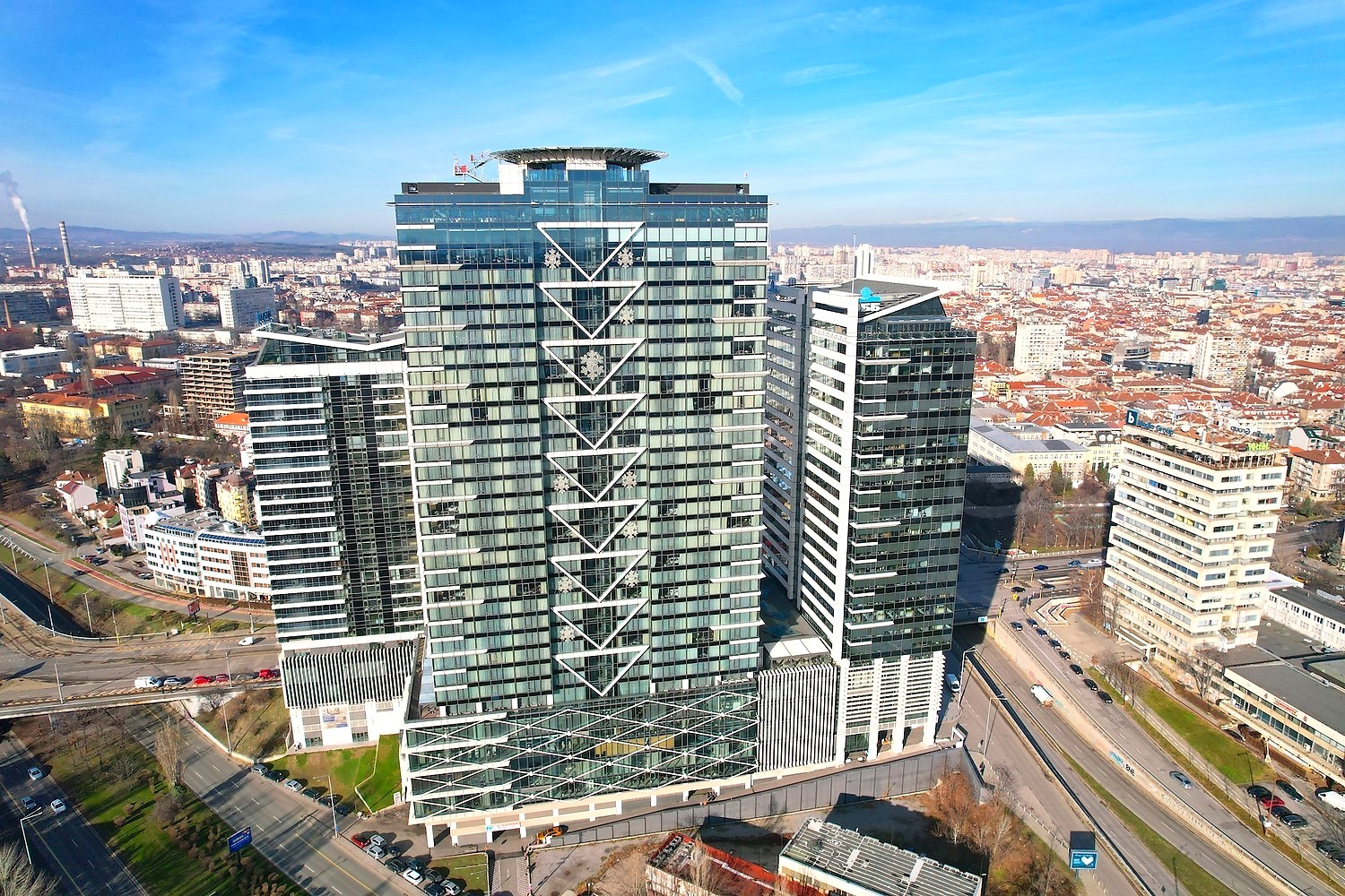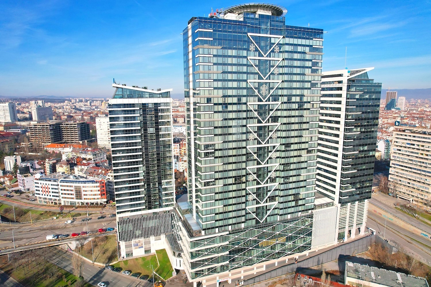 Ěčëĺíčóě Öĺíňúđ ńĺ ńúńňîč îň îôčń ńăđŕäŕ íŕ 18 ĺňŕćŕ, 5-çâĺçäĺí őîňĺë íŕ 32 ĺňŕćŕ, ćčëčůíŕ ńăđŕäŕ íŕ 24 ĺňŕćŕ, ňúđăîâńęč öĺíňúđ č ďŕđęčíă íŕ ďĺň íčâŕ. Ćčëčůíŕňŕ ńăđŕäŕ ĺ îđčĺíňčđŕíŕ íŕ ţă ń íĺâĺđî˙ňíč ăëĺäęč ęúě Âčňîřŕ č ďŕđęŕ, ęŕęňî č ęúě öĺëč˙ ăđŕä.