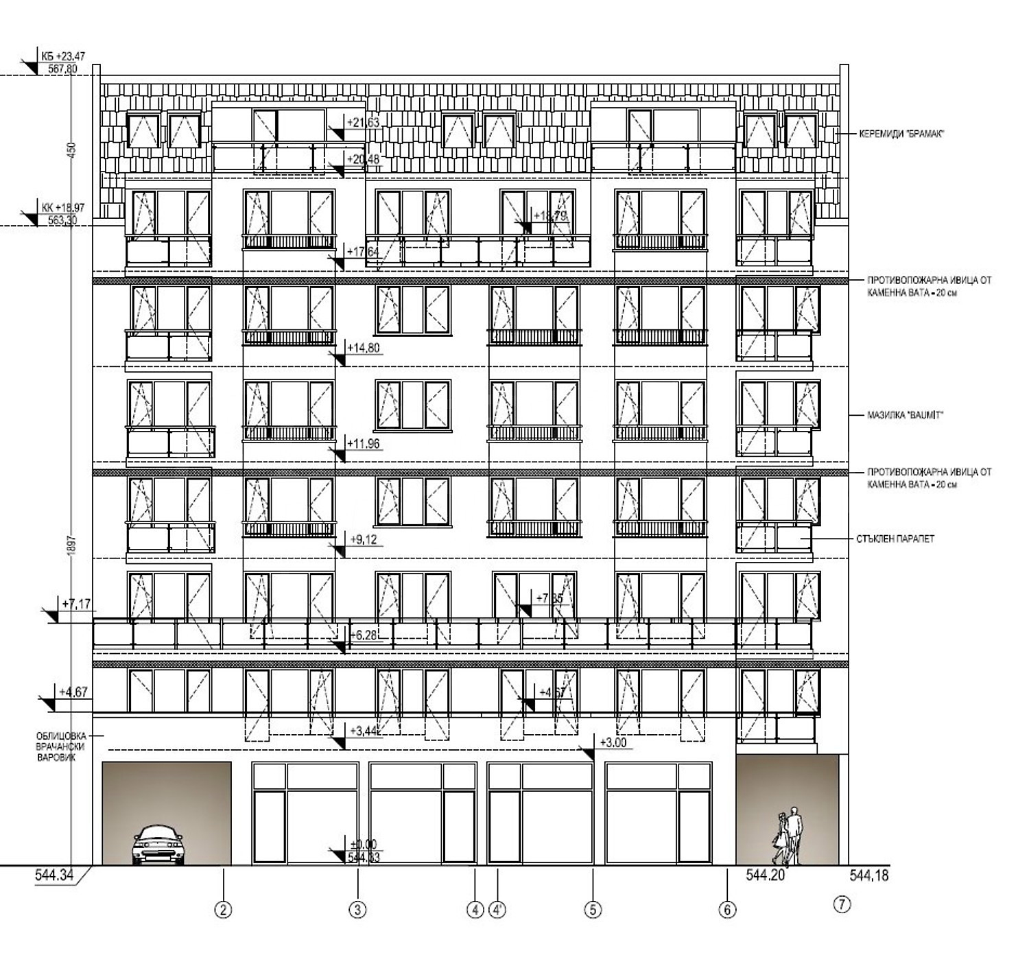 3. From elevation 0.00 to level 1-st floor heat insulation and cladding with stone lining.