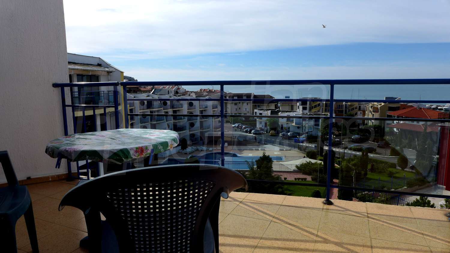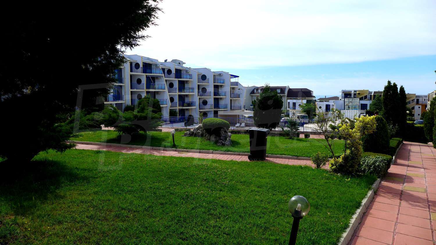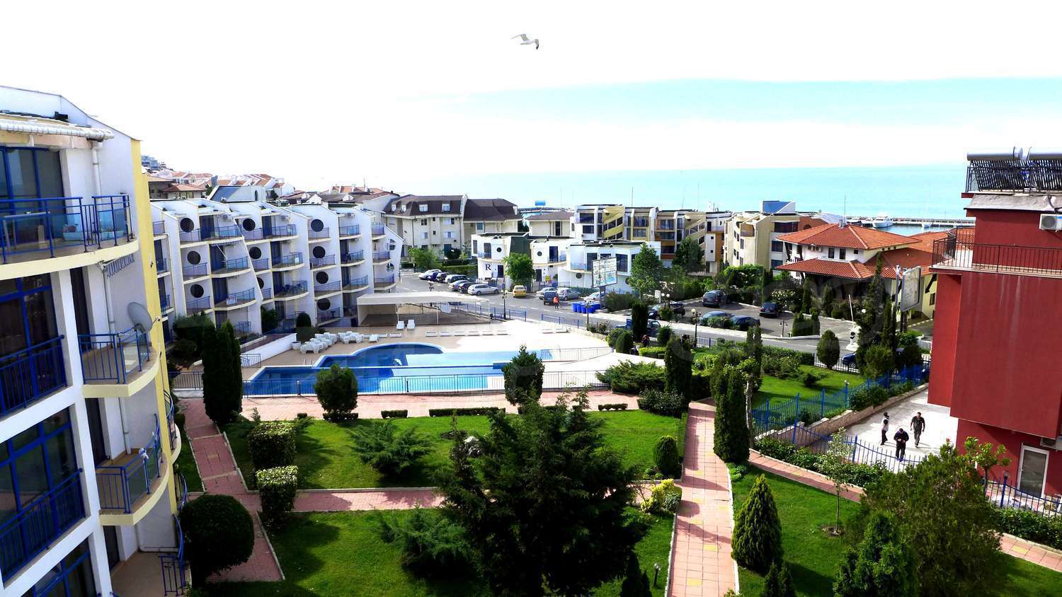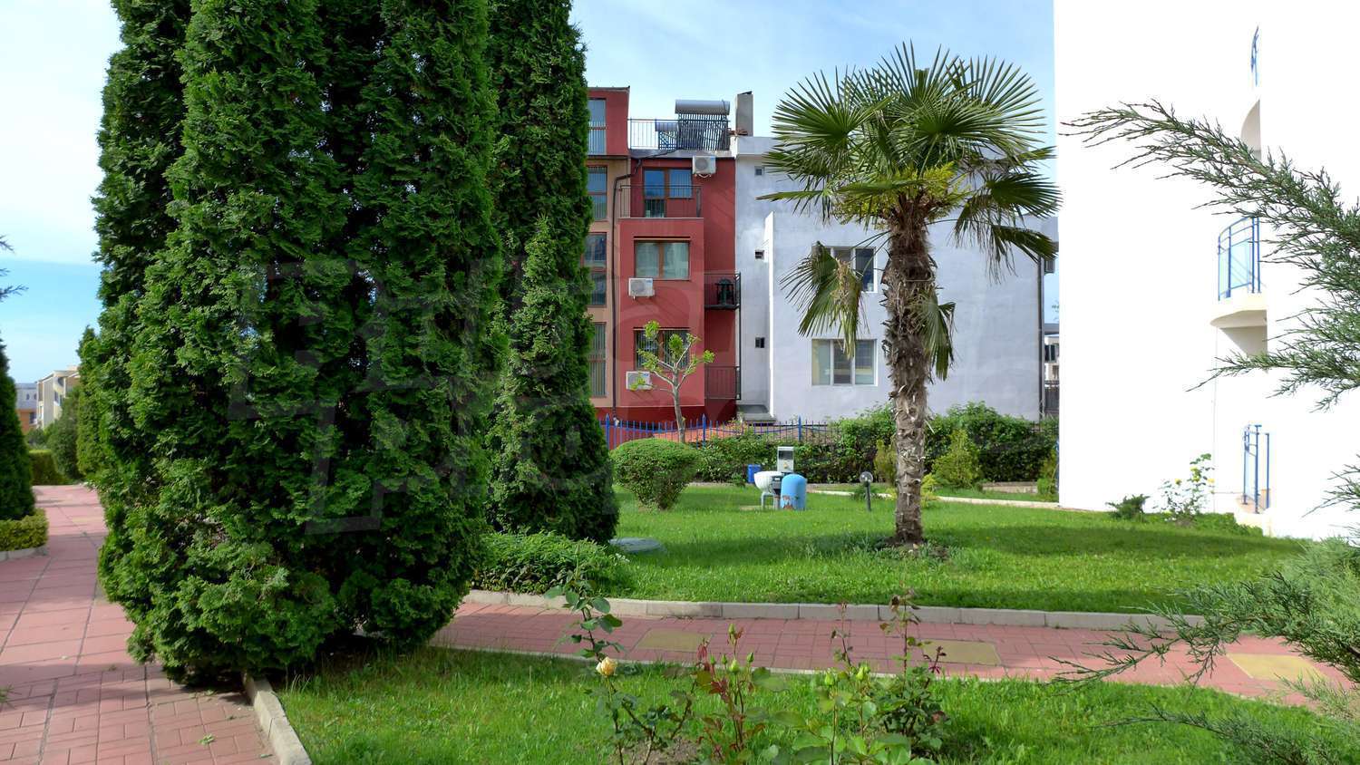 The apartment is located in a complex built in 2007, located on the 2nd beach line, in close proximity to the beach and the sea. There are 2 swimming pools, Aqua-bar, gym, internet hall, cosmetic centre with sauna and solarium, hairdresser, shop, exchange office, piano bar, parking.
