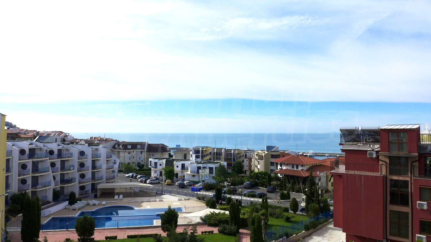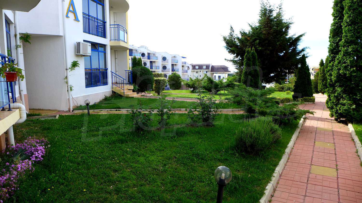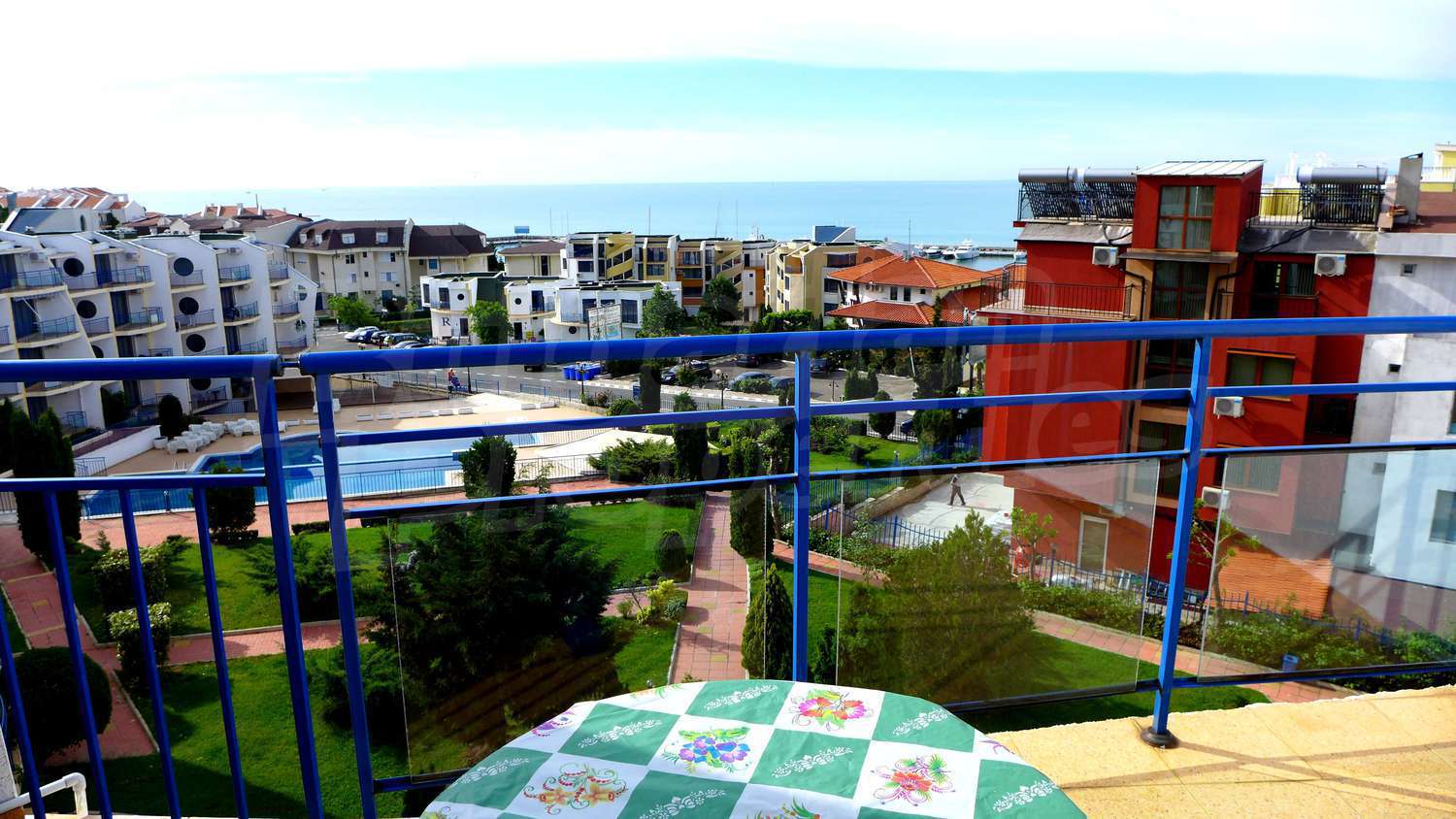 The apartment is located in a complex built in 2007, located on the 2nd beach line, in close proximity to the beach and the sea. There are 2 swimming pools, Aqua-bar, gym, internet hall, cosmetic centre with sauna and solarium, hairdresser, shop, exchange office, piano bar, parking.