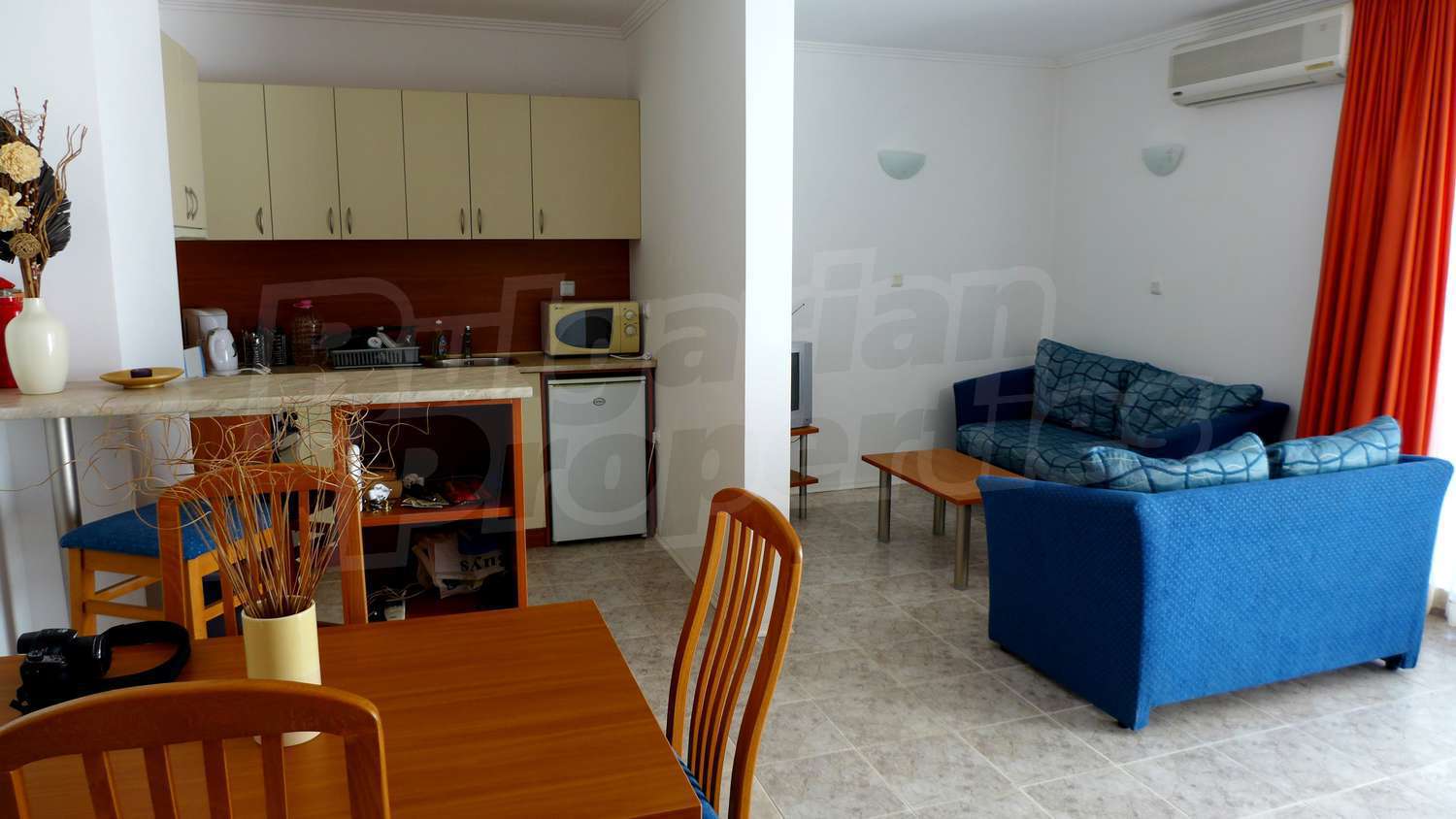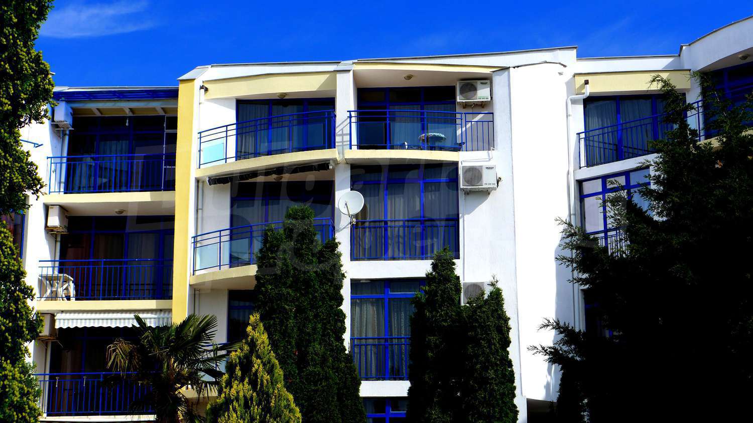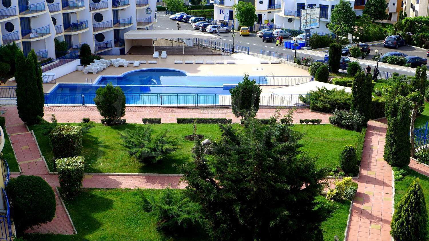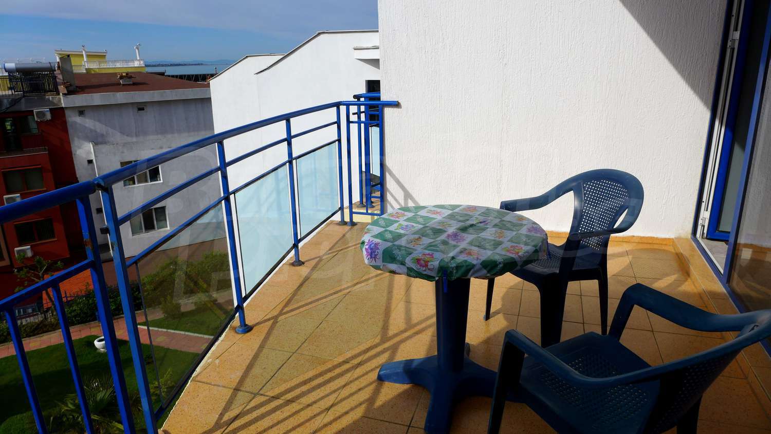 The apartment is located in a complex built in 2007, located on the 2nd beach line, in close proximity to the beach and the sea. There are 2 swimming pools, Aqua-bar, gym, internet hall, cosmetic centre with sauna and solarium, hairdresser, shop, exchange office, piano bar, parking.