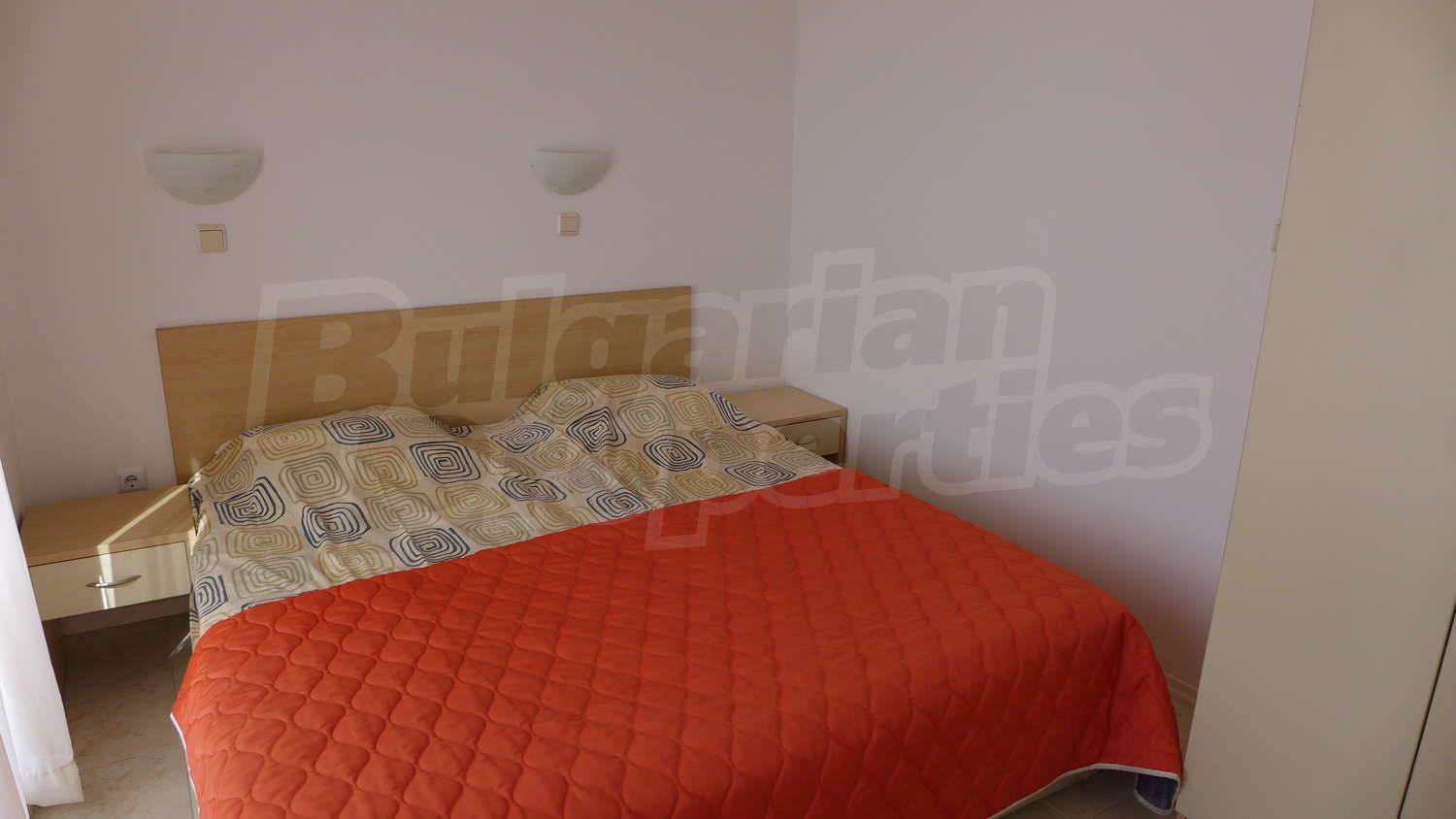 • Bedroom with double bed, bedside tables and wardrobe;