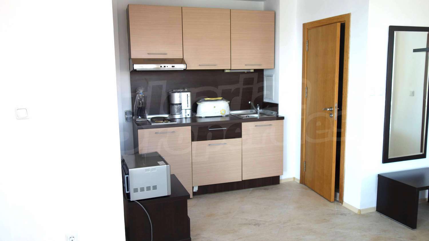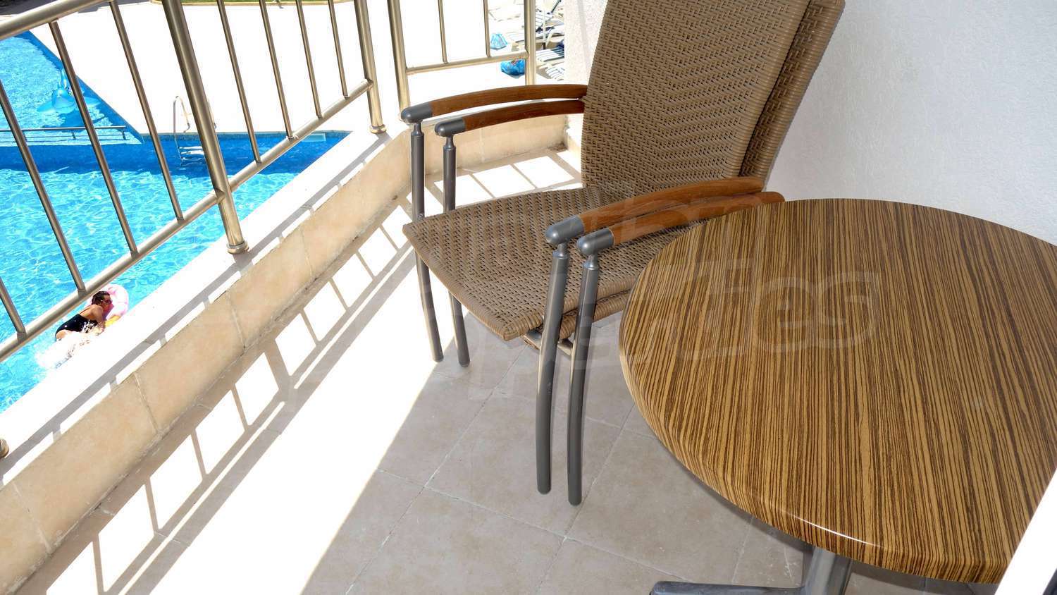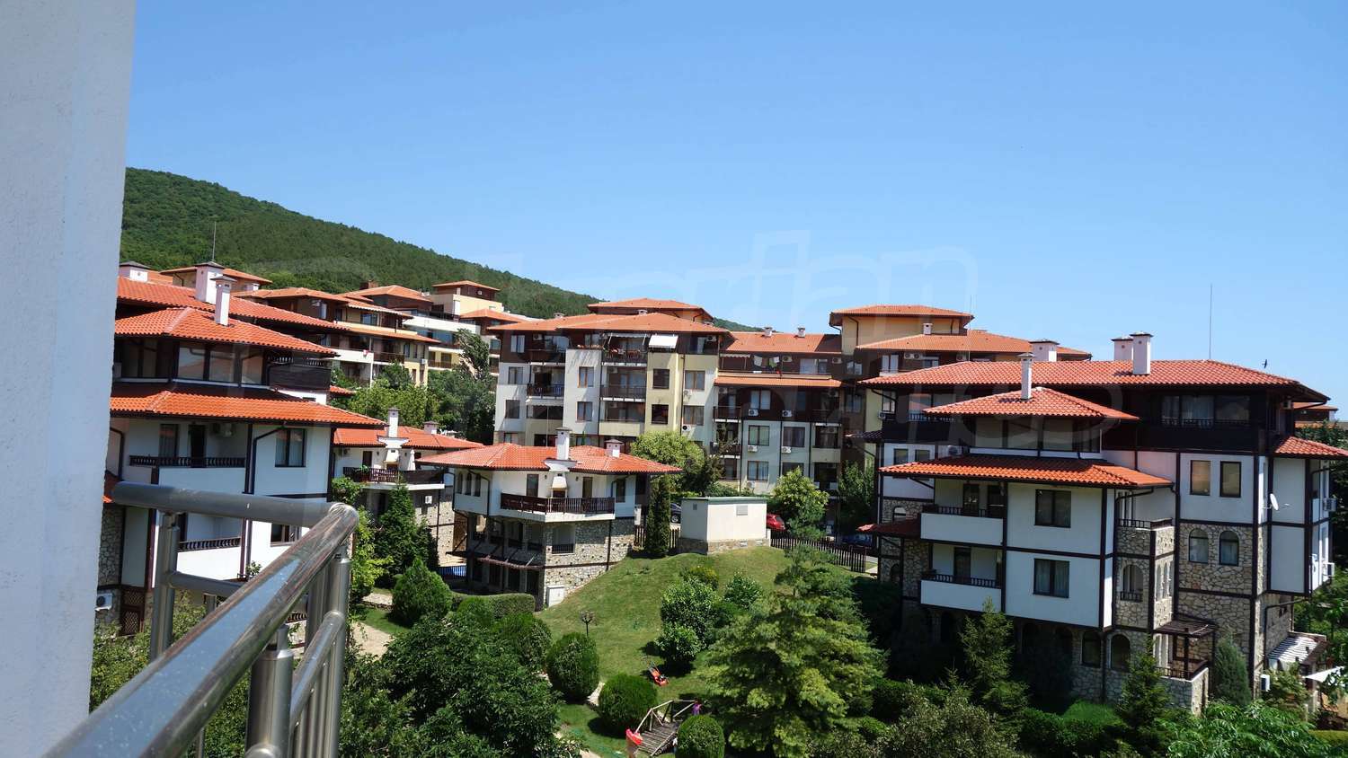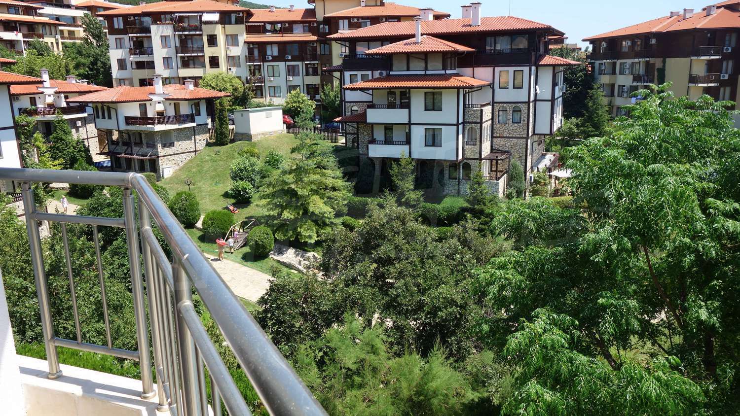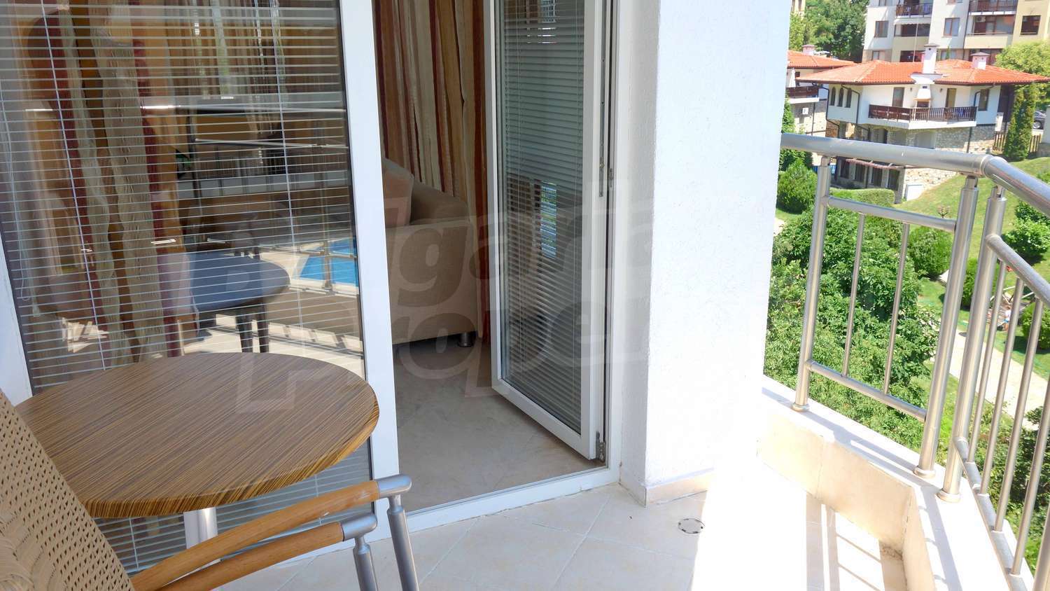 The complex has an outdoor pool with a separate section for children, a café, a parking lot and a gym. The maintenance fee for the common areas is 12 Euro/sq.m. per year.