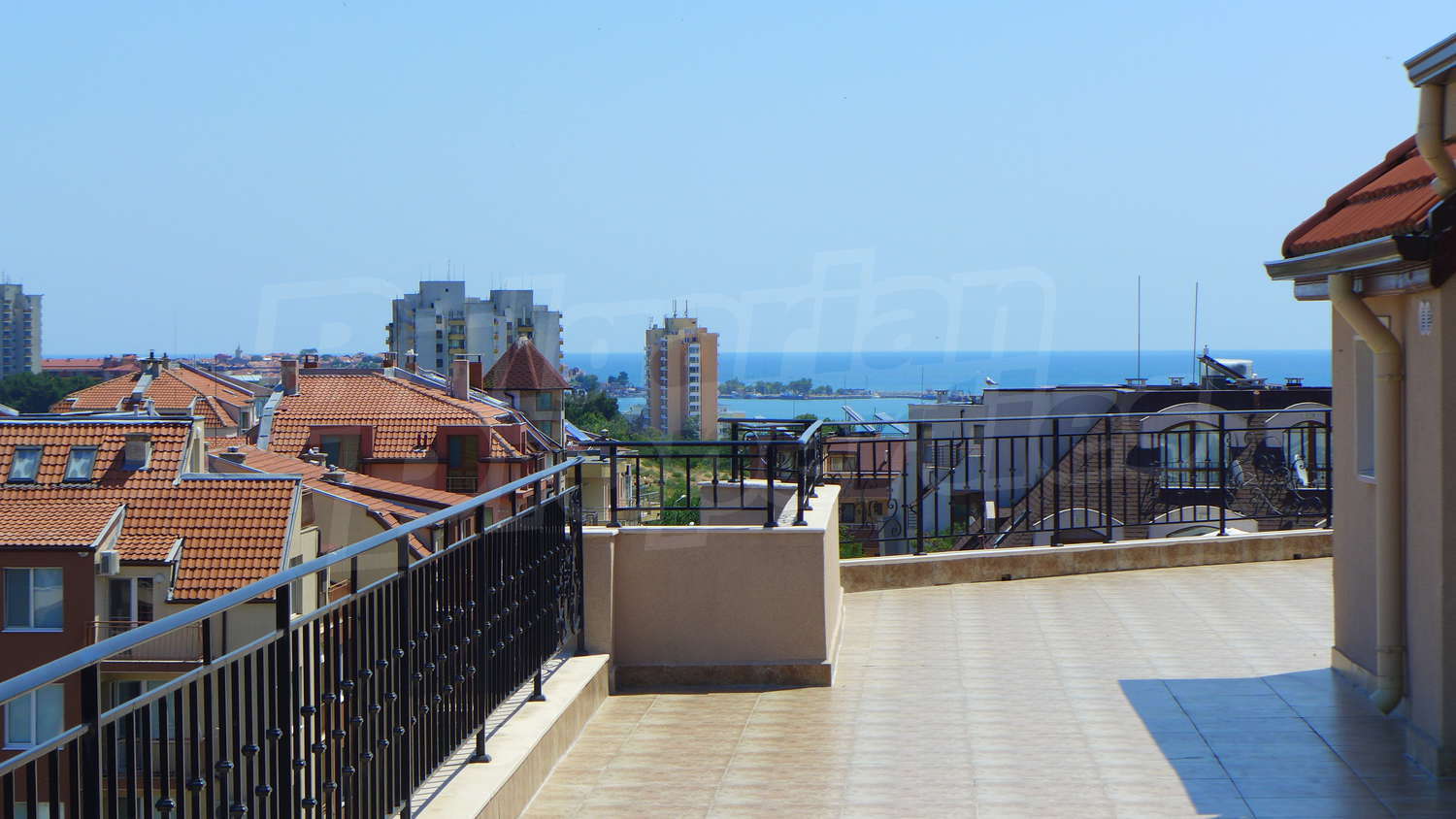 The flat is located on the top 6th floor of the building and offers breathtaking views of the sea and the city.