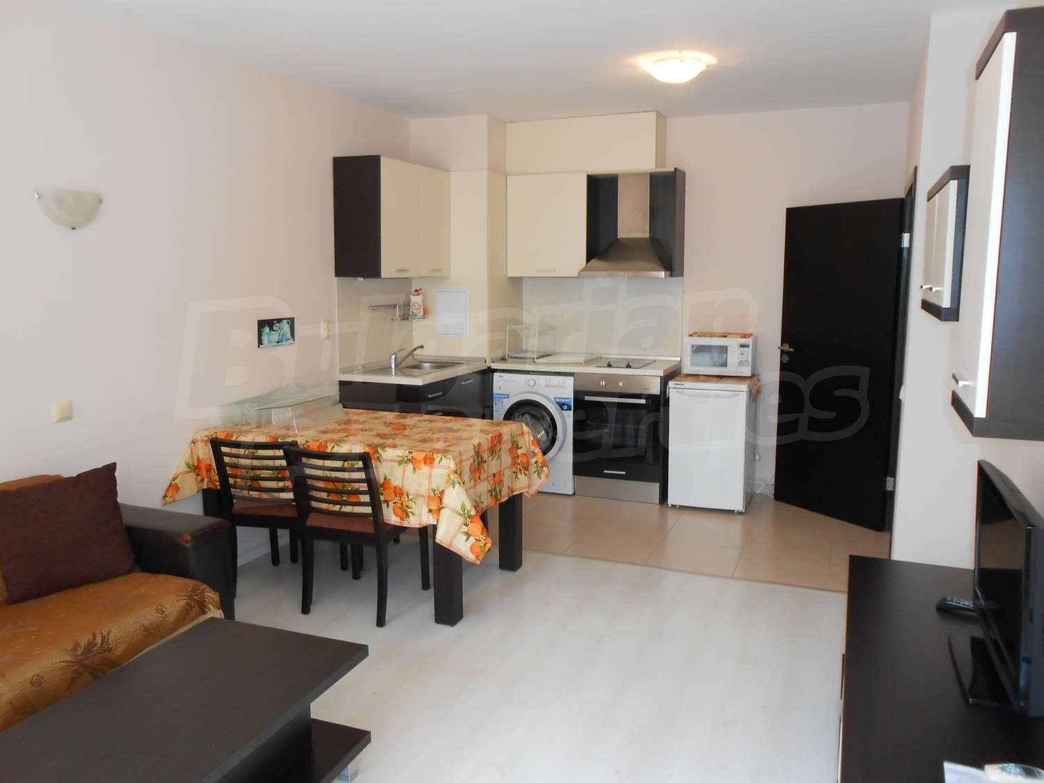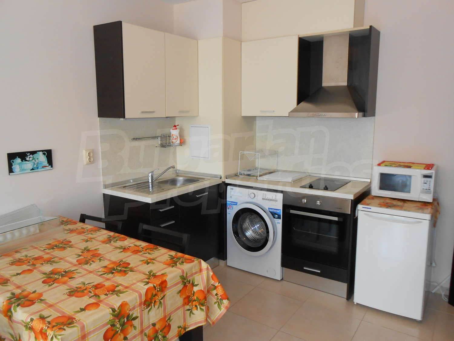 • Kitchen with all appliances: sink, aspirator, electric hob, oven, refrigerator, washing machine, microwave