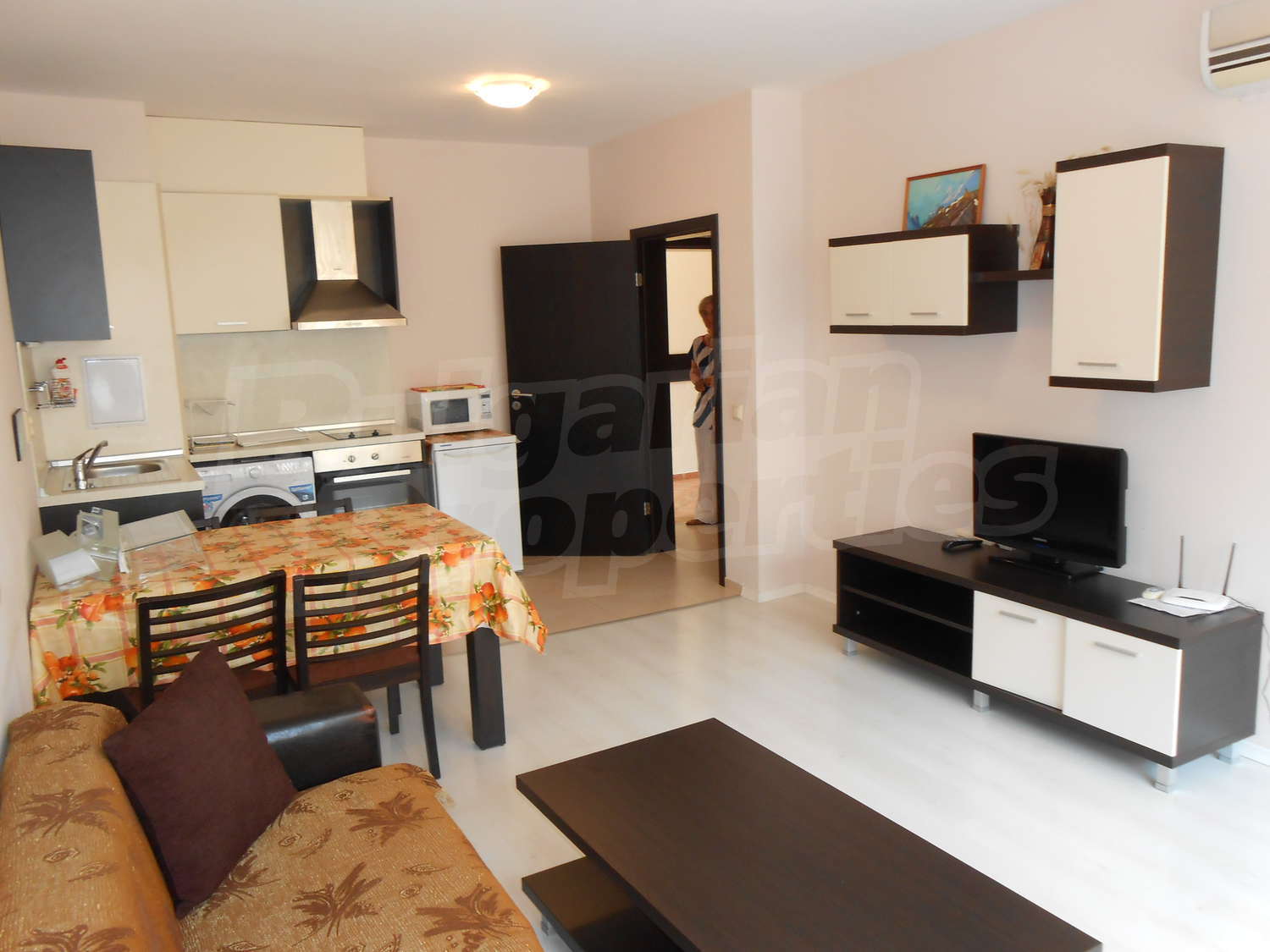 The apartment is fully fitted with furniture and appliances: