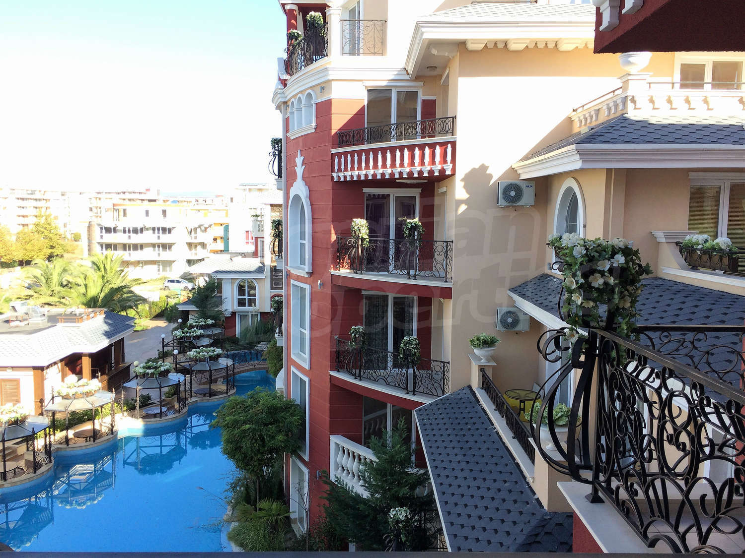 The complex is located in a quiet part of the Sunny Beach resort, next to a green protected area with sand dunes. The area has a wide sandy strip. Nearby are a supermarket, a polyclinic, a sports complex and a tennis court. The connection with Nessebar by public transport, takes 2 minutes and the walking distance is approximately 10 minutes. The central part of Sunny Beach can be reached by public transport in 5 minutes or by foot - in 20 minutes.