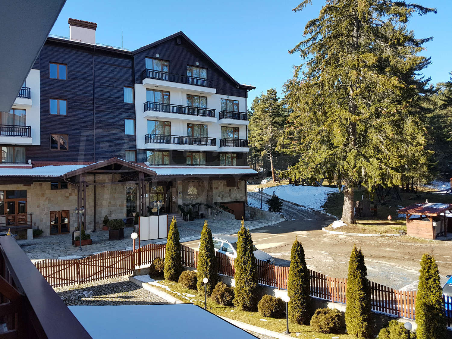 Excellent offer for fully furnished and equipped large studio in the elite gated complex Rila Park in the mountain resort Borovets, only 100 m from the slopes of Yastrebets ski area (1 minute on foot or less than a minute skiing). The complex is located high in the Rila Mountain, about 1500 meters above sea level, situated amidst the century-old pine forest that surrounds the entire complex. Rila Park is set in close proximity to Rila National Park, one hour drive from Sofia (less than 60 km) and 13 km to Samokov bus station.