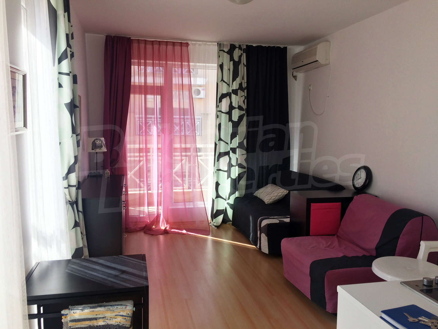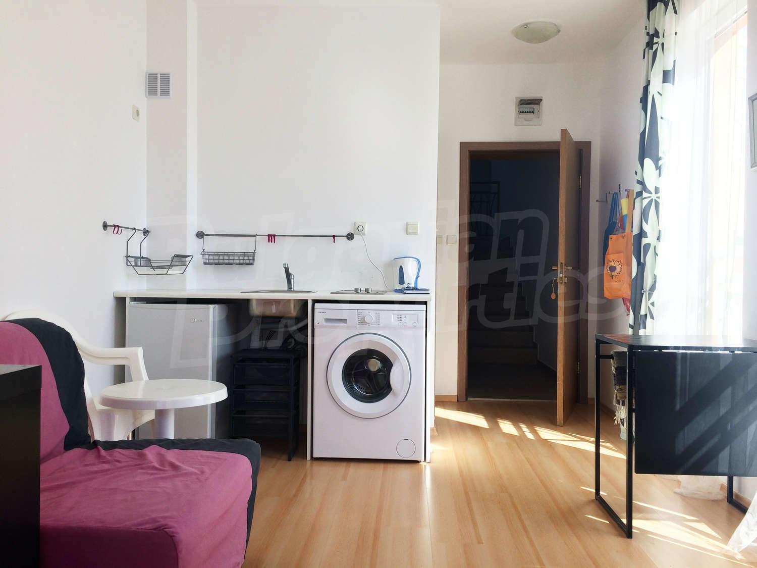 Ready to move in studio (32 sq.m.) set on the third floor in Sunny Day 6 complex, close to the holiday resort Sunny Beach, just 3 km from the beach and 1 km to a bus stop. The ancient and picturesque town of Nessebar - part of the UNESCO-protected national heritage - is located 7 km from the property and the international airport in Bourgas - 35 km. A bus stop is available 50 meters from the complex.