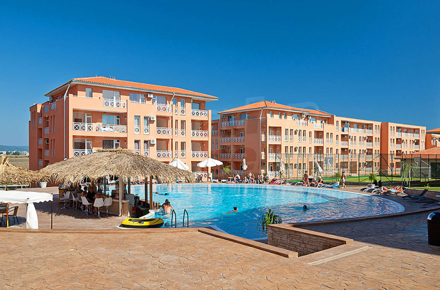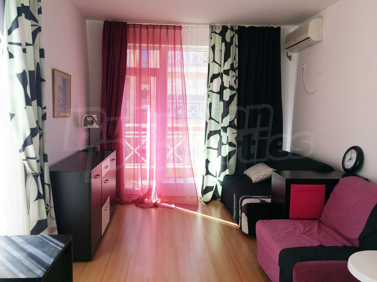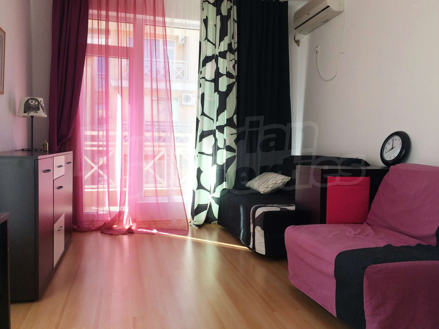 Ready to move in studio (32 sq.m.) set on the third floor in Sunny Day 6 complex, close to the holiday resort Sunny Beach, just 3 km from the beach and 1 km to a bus stop. The ancient and picturesque town of Nessebar - part of the UNESCO-protected national heritage - is located 7 km from the property and the international airport in Bourgas - 35 km. A bus stop is available 50 meters from the complex.