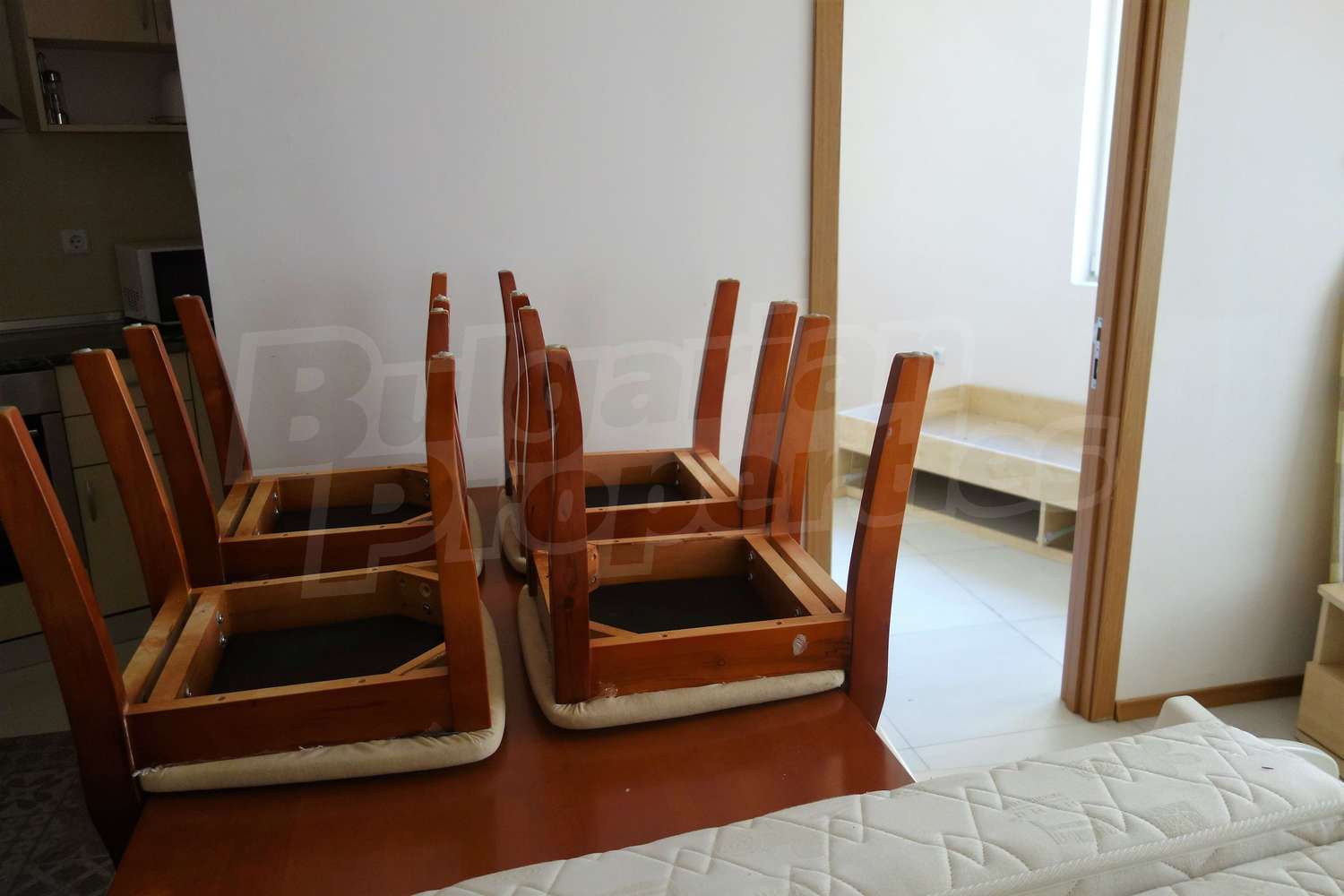 The newly-built apartment (2009) with an area of 67.92 sq.m. is distributed between a dining area with kitchenette, 2 bedrooms, a bathroom with toilet and a terrace. The apartment is fully furnished and equipped, with heating and cooling through air conditioning. The apartment is bright and cozy, wired for cable TV and internet. The annual maintenance fee for the complex is 8 Euro / sq.m.