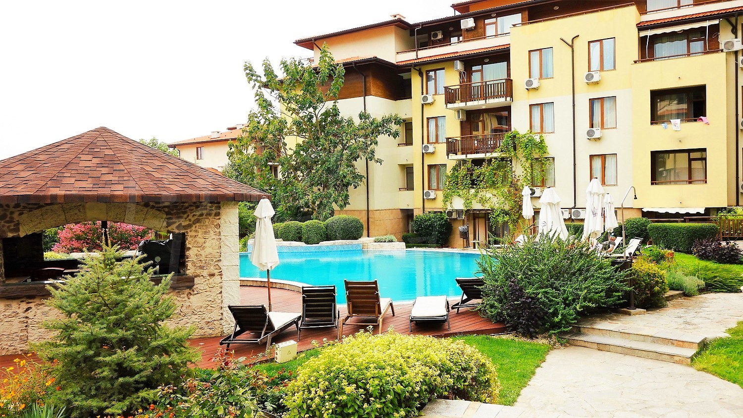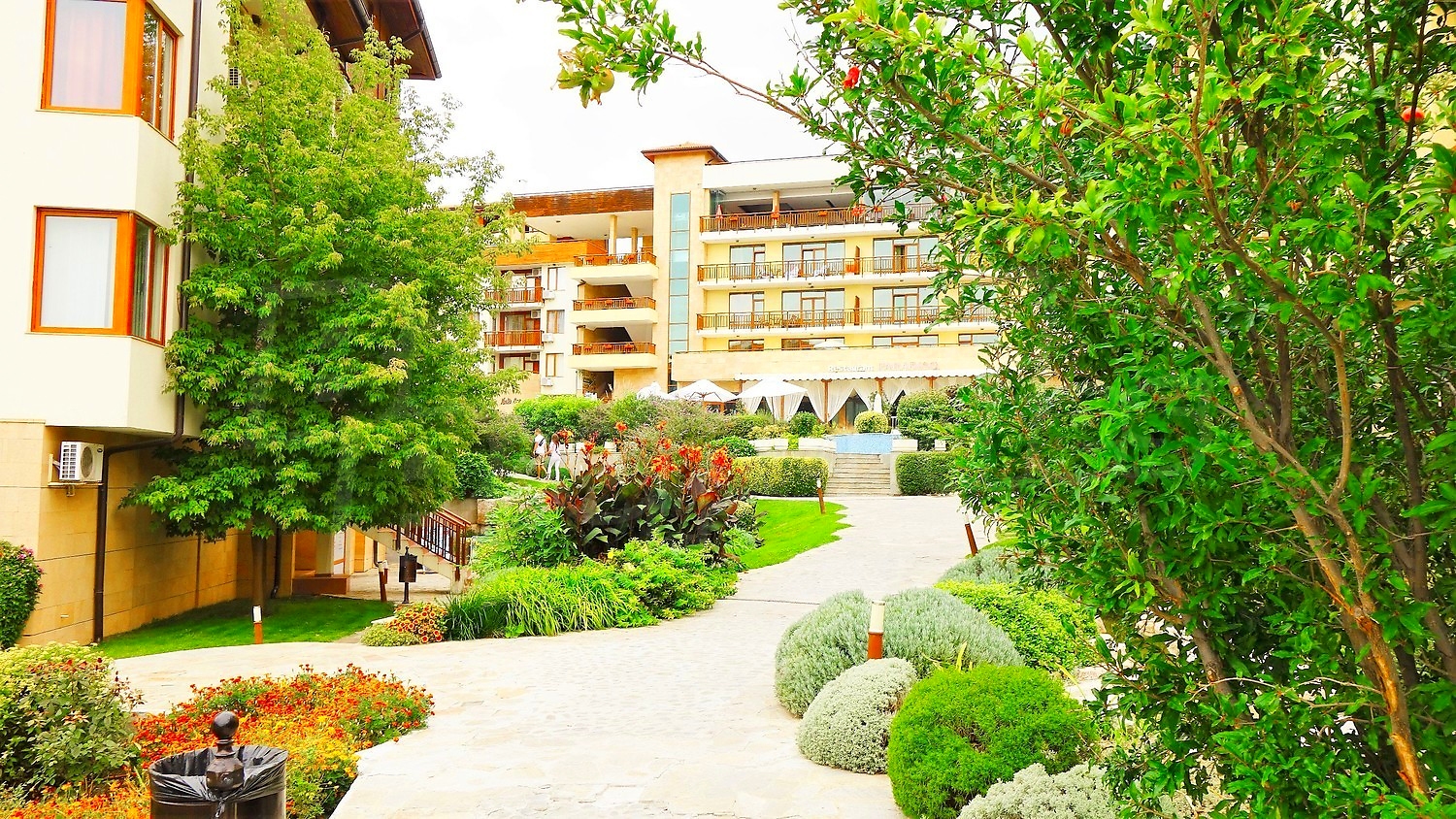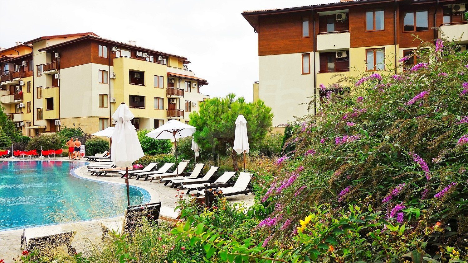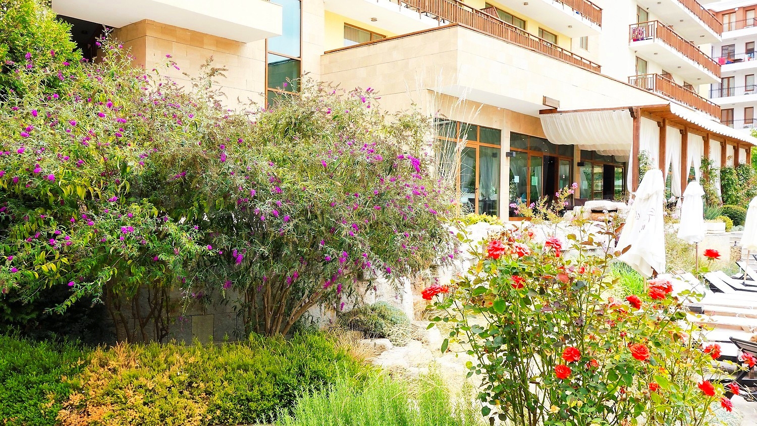 A wonderful combination of mountain, sea and beautiful scenery. This unique complex with a 5-star hotel and luxury apartments is situated on a southern slope of the Black Sea coast, overlooking the ancient town of Nessebar. Just a minute away from the centre of Sveti Vlas, you will find yourself in a true oasis, naturally embedded in the natural landscape.