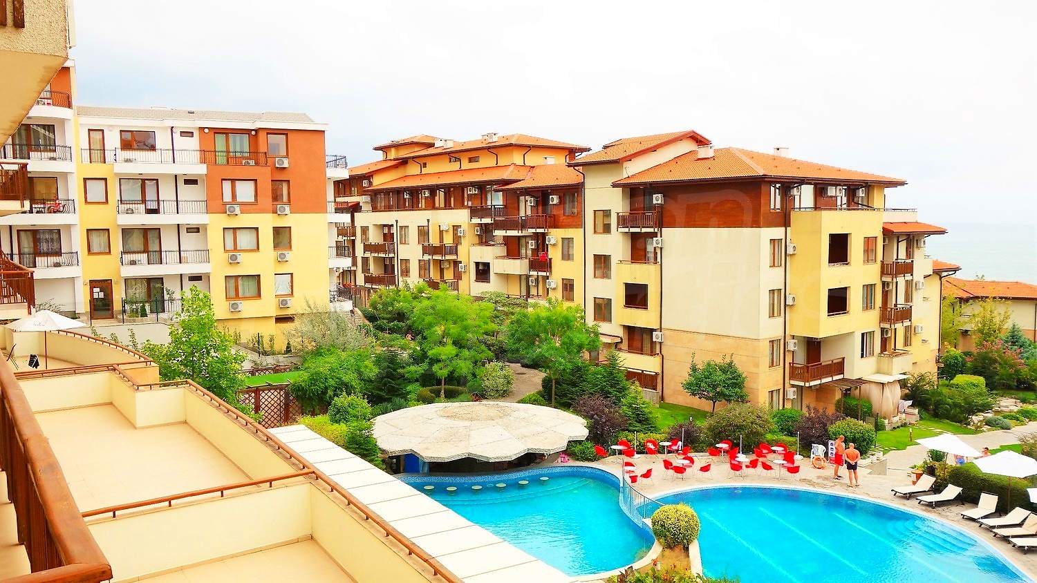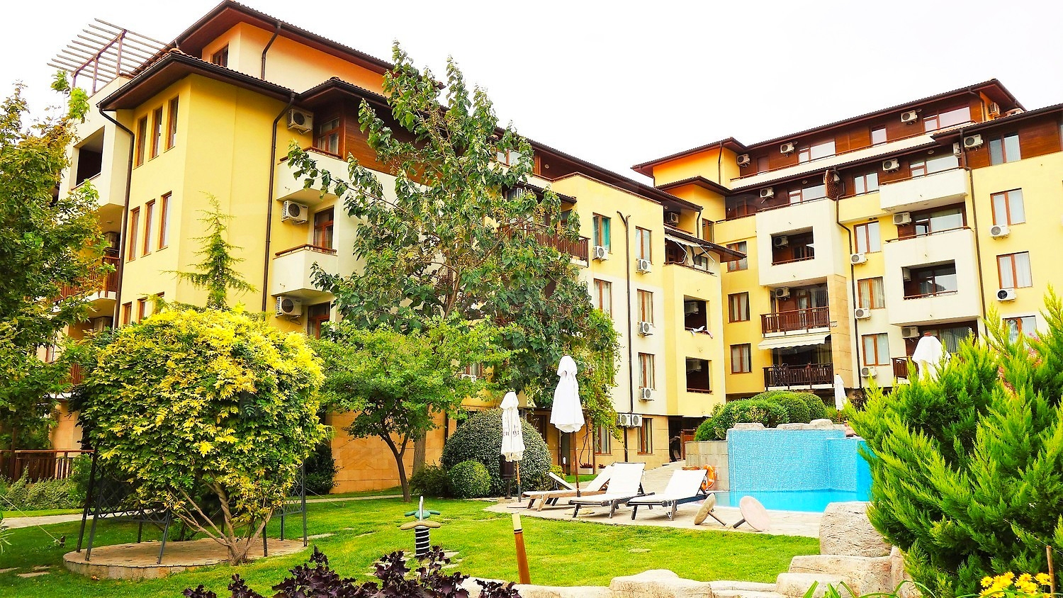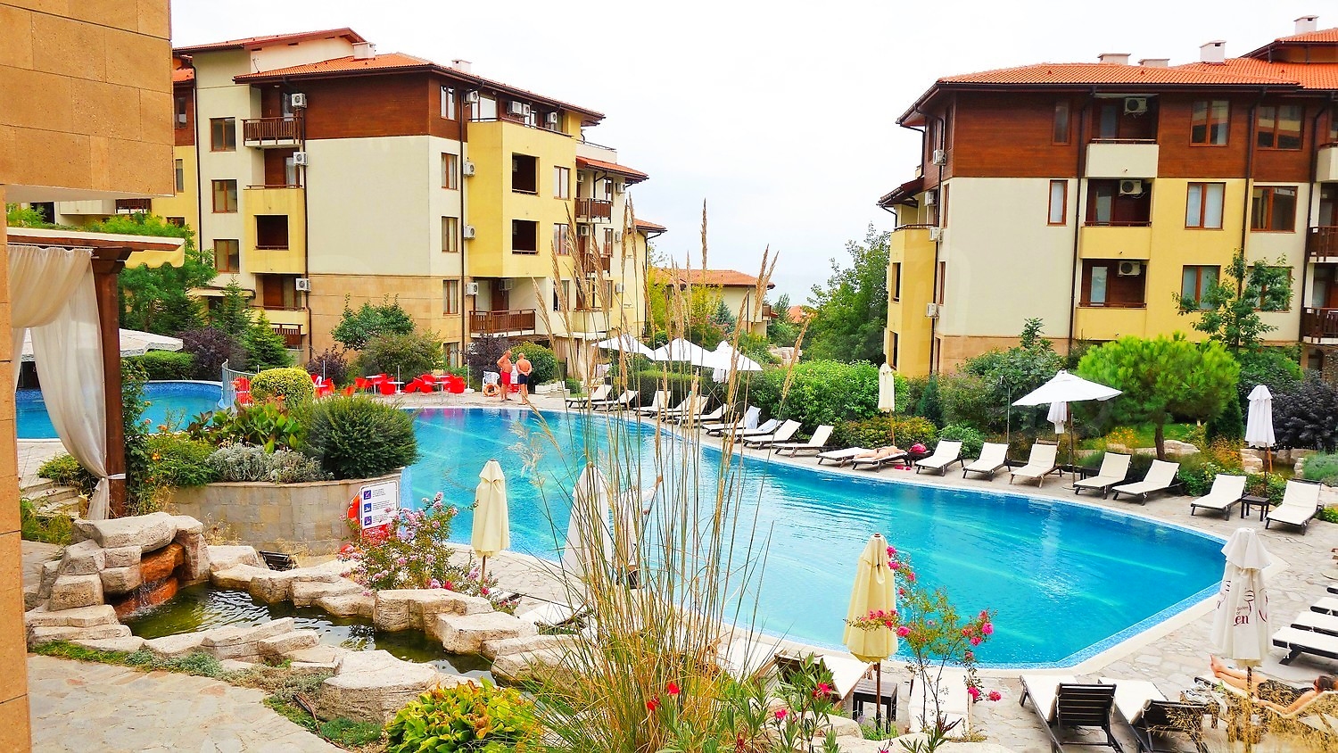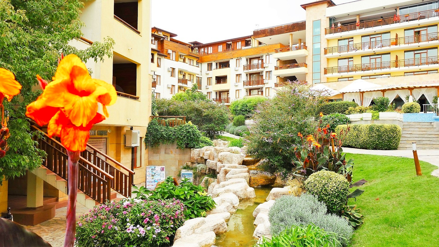 A wonderful combination of mountain, sea and beautiful scenery. This unique complex with a 5-star hotel and luxury apartments is situated on a southern slope of the Black Sea coast, overlooking the ancient town of Nessebar. Just a minute away from the centre of Sveti Vlas, you will find yourself in a true oasis, naturally embedded in the natural landscape.