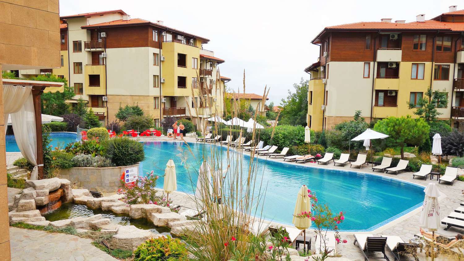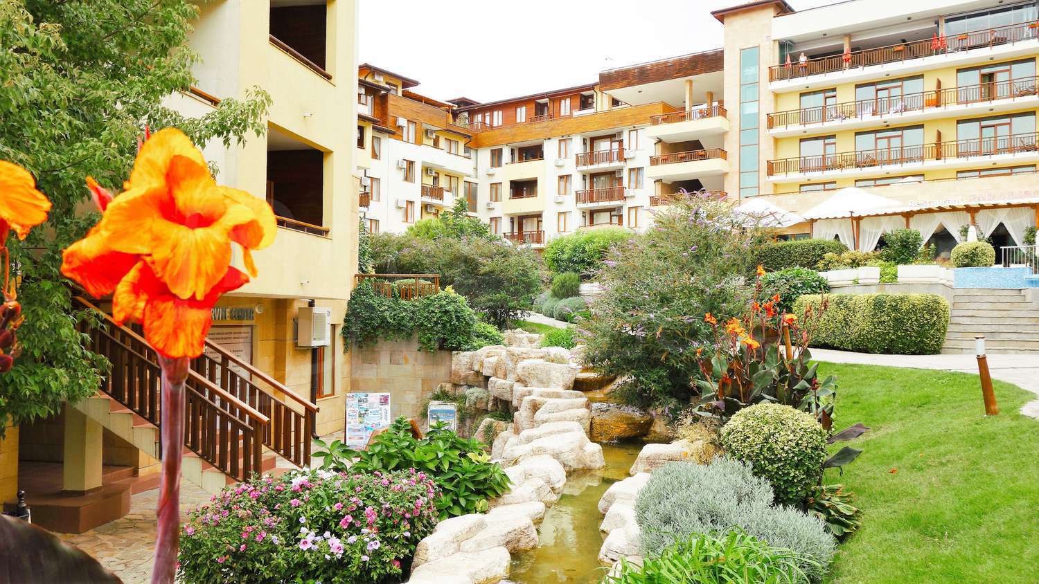 A wonderful combination of mountain, sea and beautiful scenery. This unique complex with a 5-star hotel and luxury apartments is situated on a southern slope of the Black Sea coast, overlooking the ancient town of Nessebar. Just a minute away from the centre of Sveti Vlas, you will find yourself in a true oasis, naturally embedded in the natural landscape.